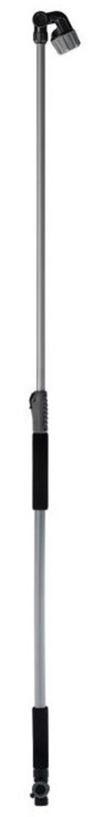 Choose from four spray patterns: vertical, horizontal, jet, or shower Adjust the angle and lock the spray head into the desired position without the worry of bumping it out of place Watering tool's five-position pole extends easily from 3.5 ft. to 6 ft. for more reach Quick-Release button telescopes the pole with the push of a button Orbit watering tool is designed to fit inside a standard gutter for easy fall clean up Smooth, easy operation of the thumb control makes controlling the flow of water simple Connects to standard garden hose