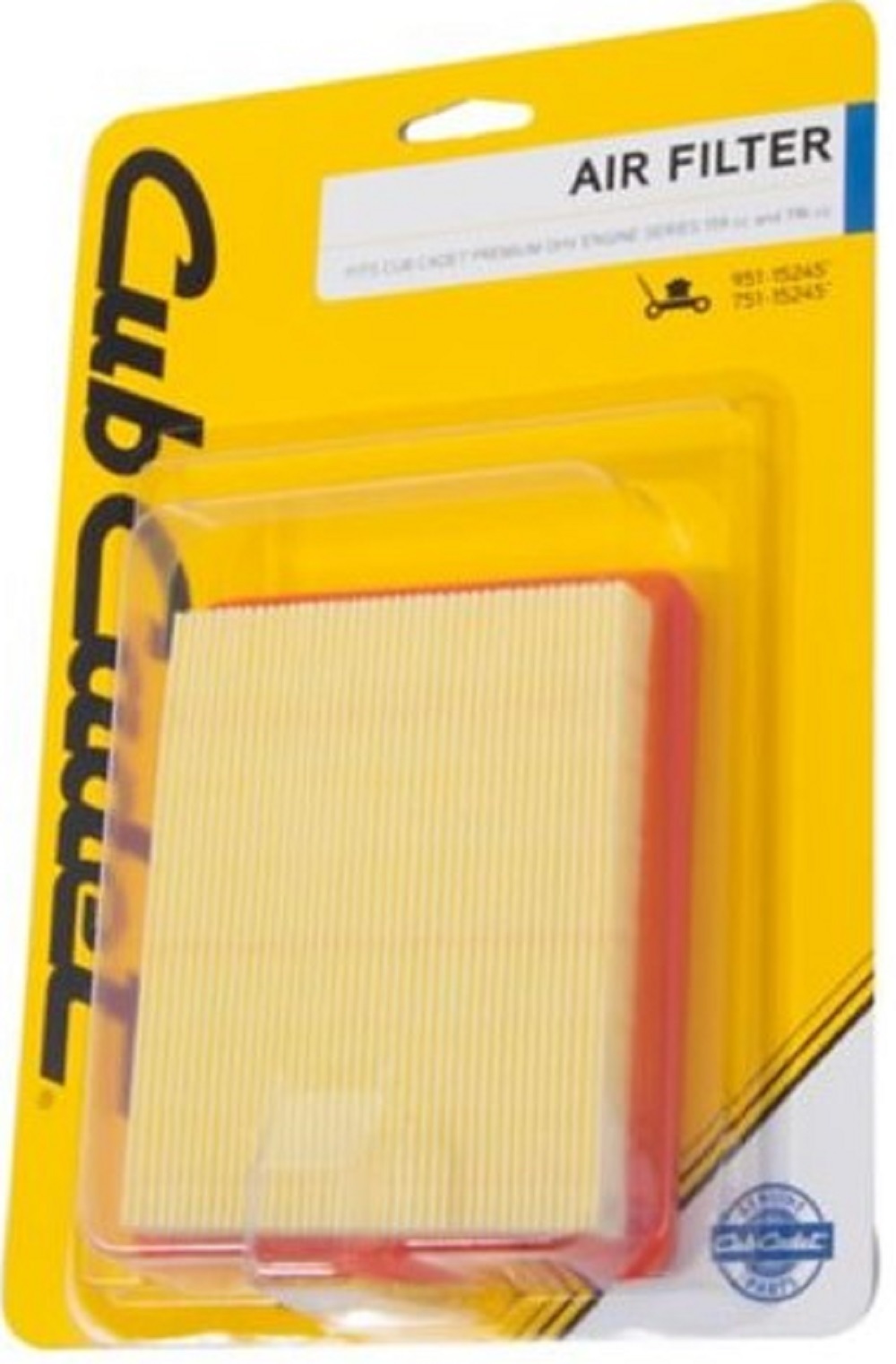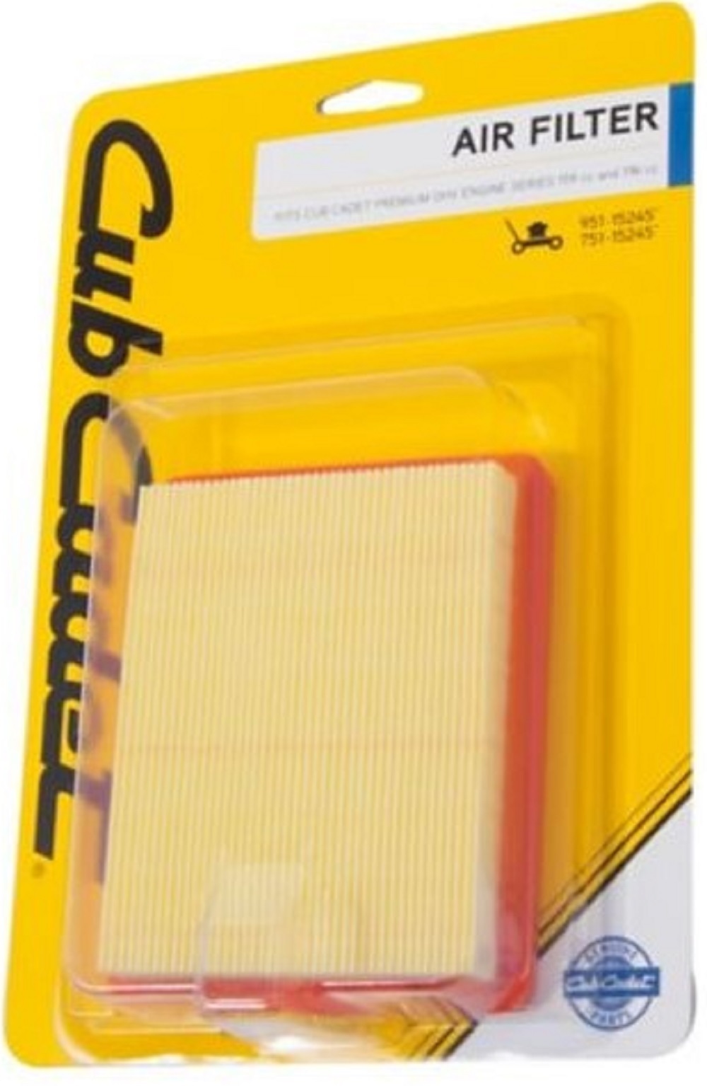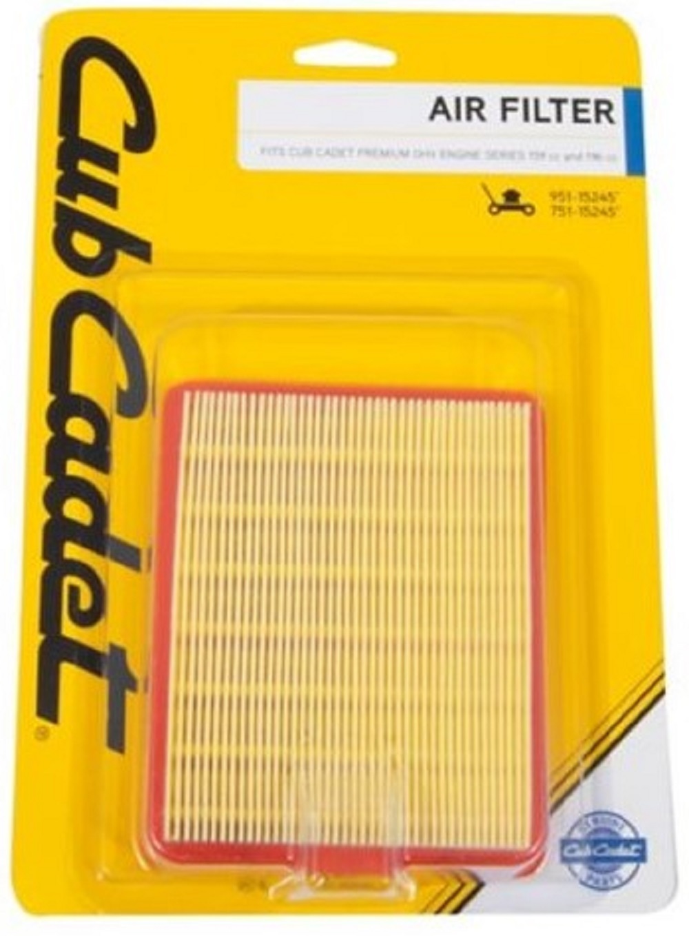 Arnold air filter fits Cub Cadet Premium OHV Engine Series 159cc and 196cc Mower air filter replacement for parts starting with 951-15245(_) / 751-15245(_) Consult operator's manual for replacement instructions specific to your mower Mower air filter should be replaced each season for better performance