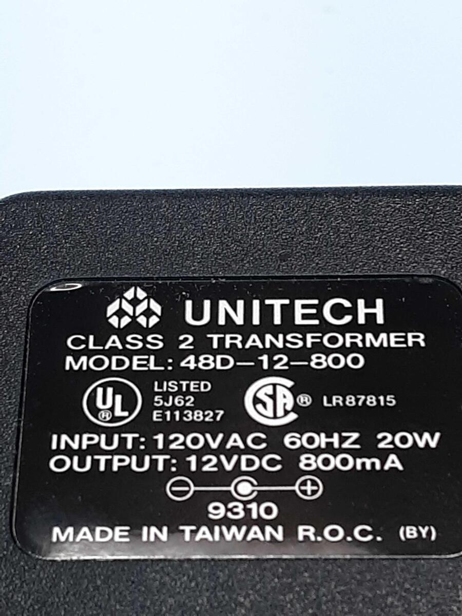 Unitech 48D-12-800 AC Power Adaptor Input 120VAC 20W, Output 12VDC 800mA