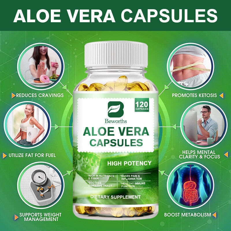 200:1 Extract Capsules Aloe Vera 5000mg Detox Cleaning Digestive Support Pills