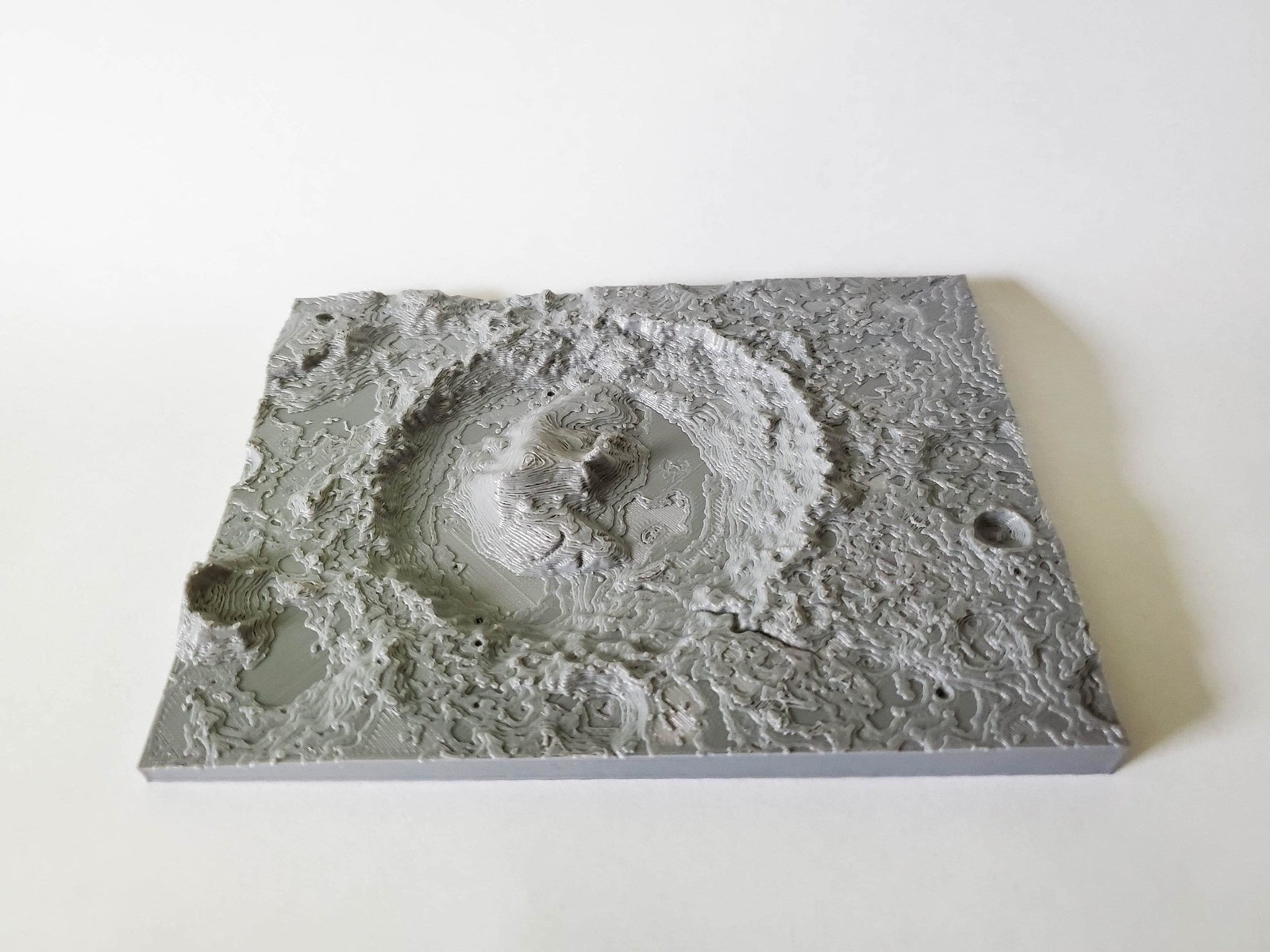 This topographic model of Gale Crater is derived from data collected by the HRSC camera onboard the ESA's Mars Express mission. Jezero Crater is currently being explored by NASA's Perseverance Rover. Someday my house will be right there at the edge looking over it and Mars wont just be a planet inhabited entirely by robots.