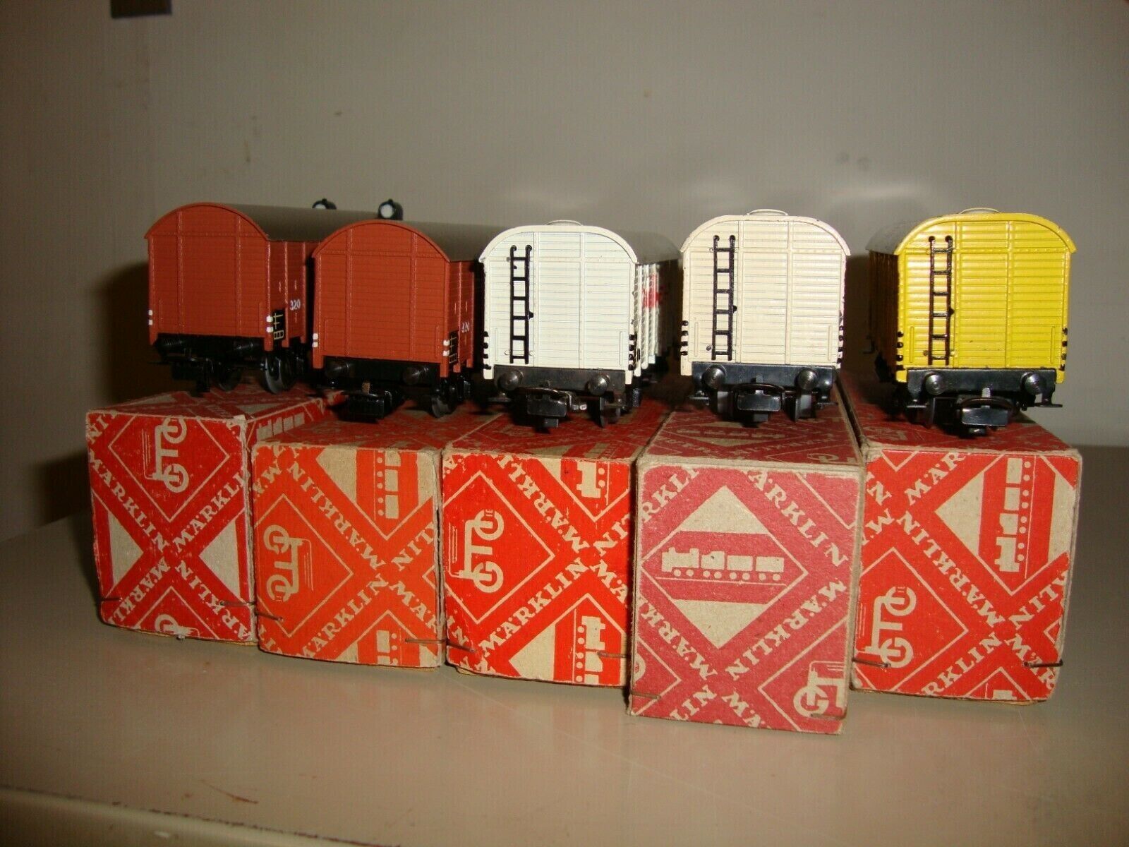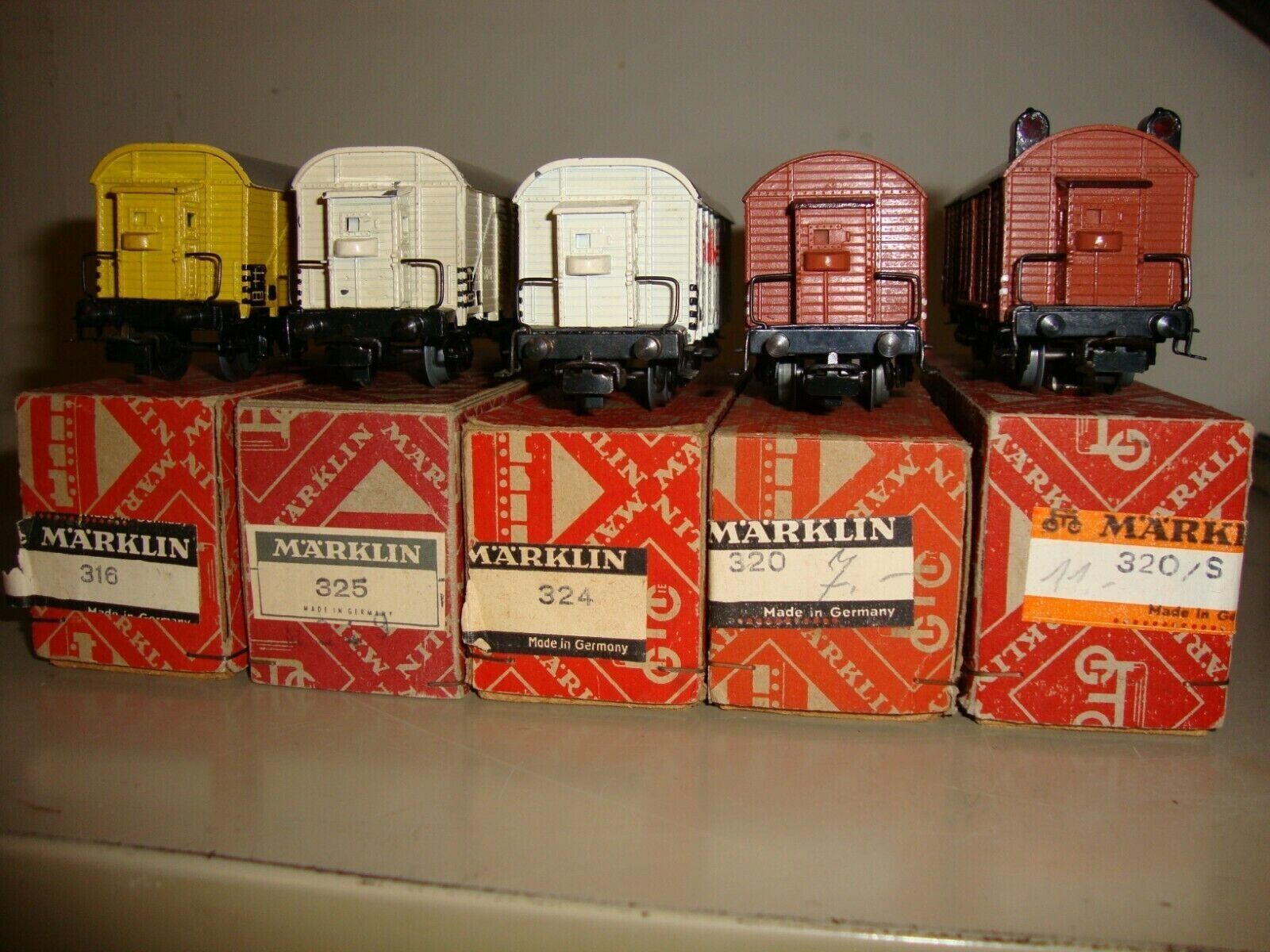 MARKLIN HO BOX CARS 320 .3 1952-55 320S .4 1954-55 324 .4 1952-55 325 .3 1950-51 326 .3 1952-55. Exceptional condition. 325 has a duplicate box. 326 is in a 316 box. Shipping includes insurance.