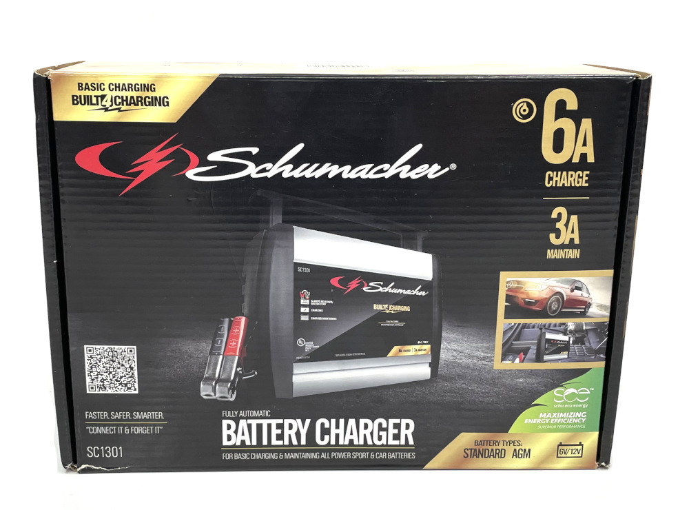 Category: Power equipmentType: Battery chargerBrand: SchumacherModel number: SC1301Size: 6a/3aColor: Black/greyPower source: ElectricCondition:New (Open Box)