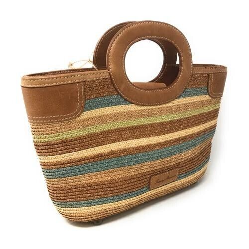 TOMMY BAHAMA STRAW BEACH HANDBAG WITH LEATHER HANDLE