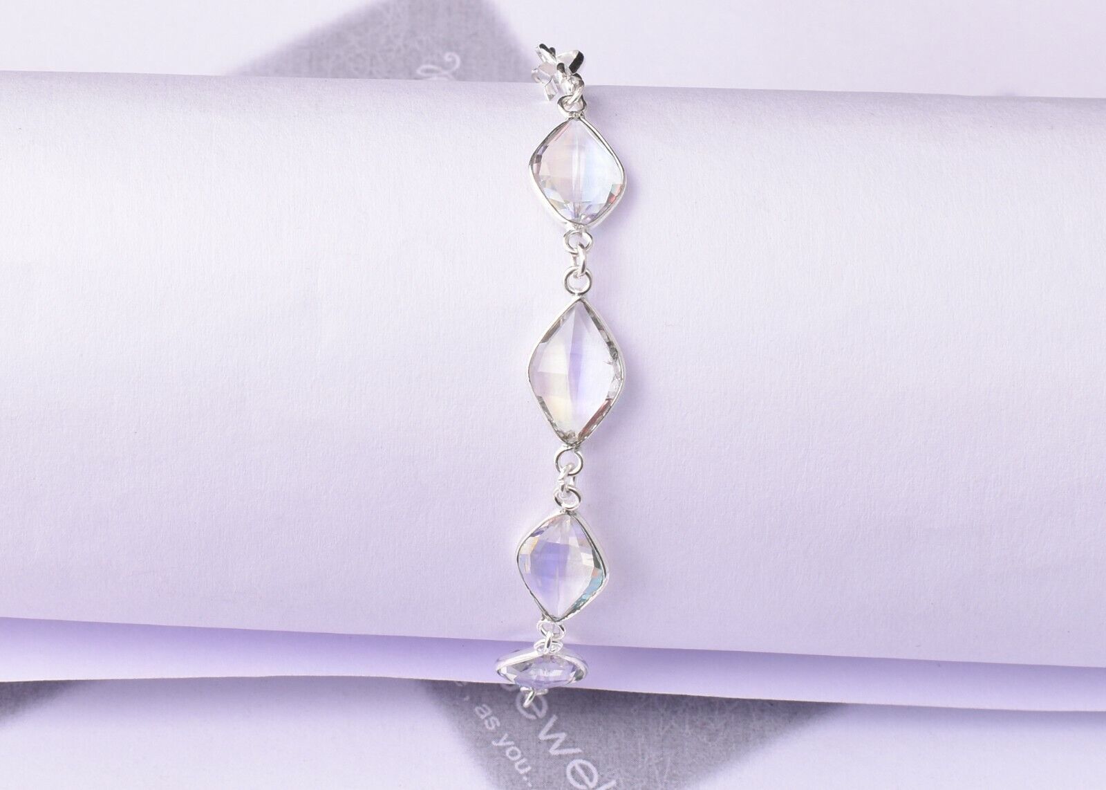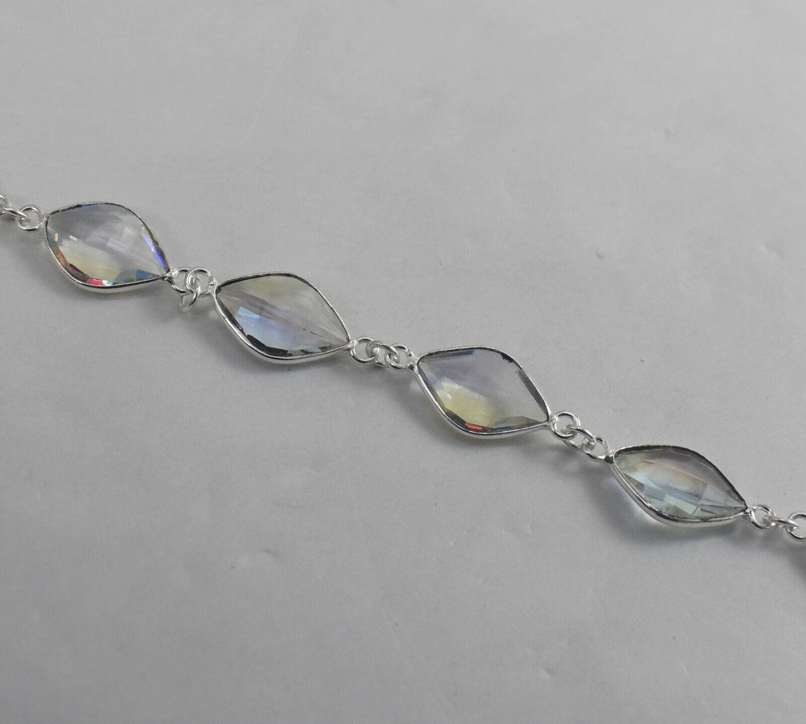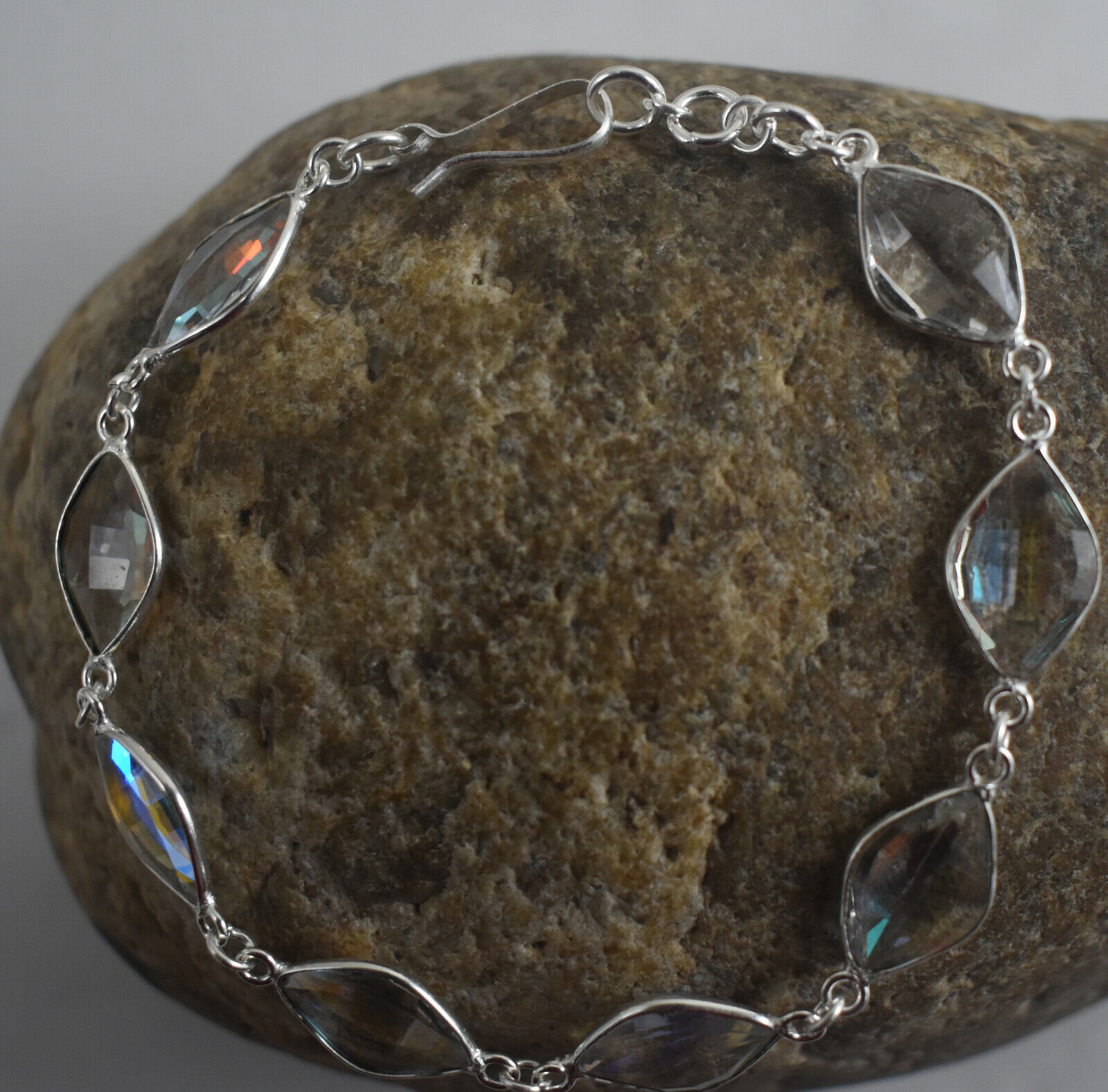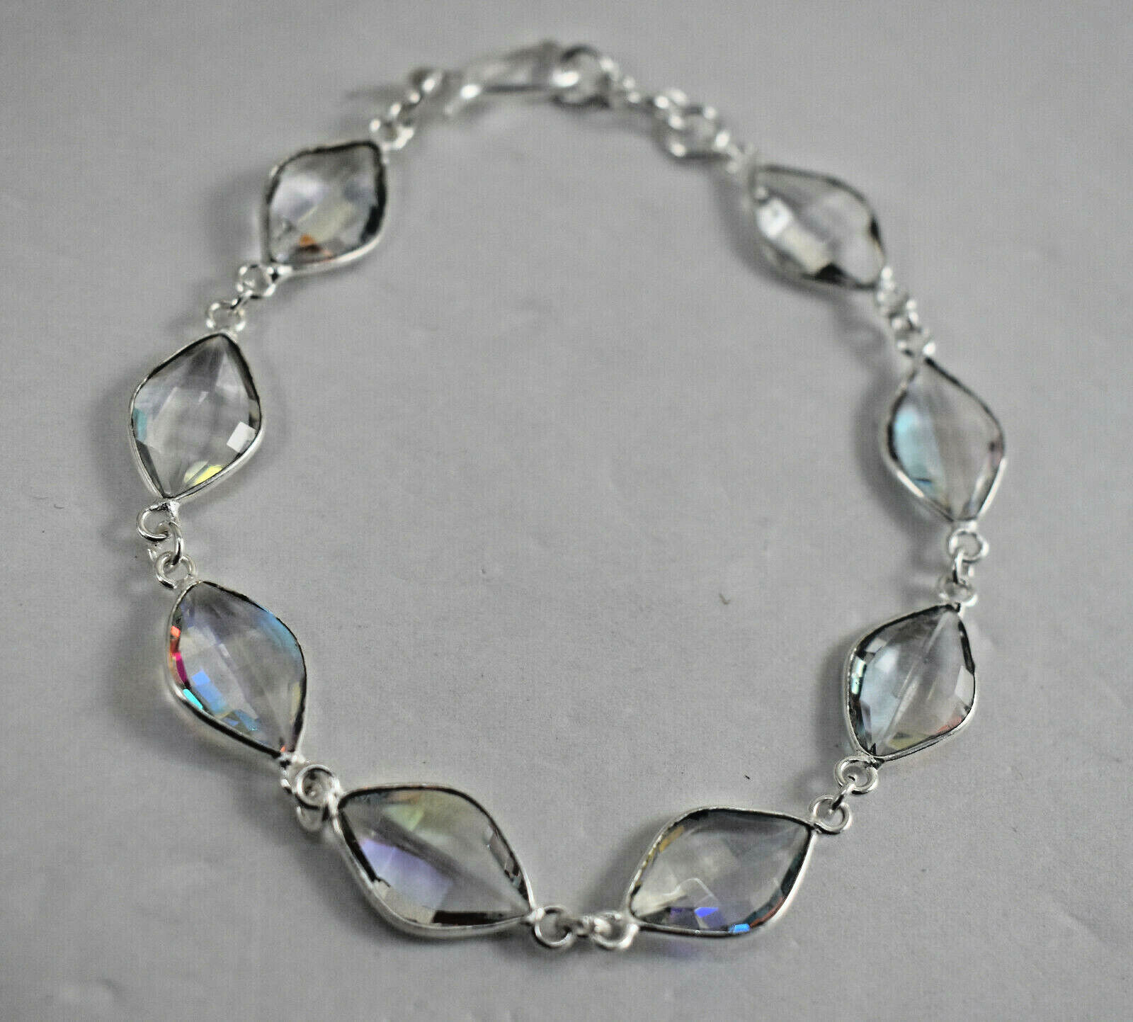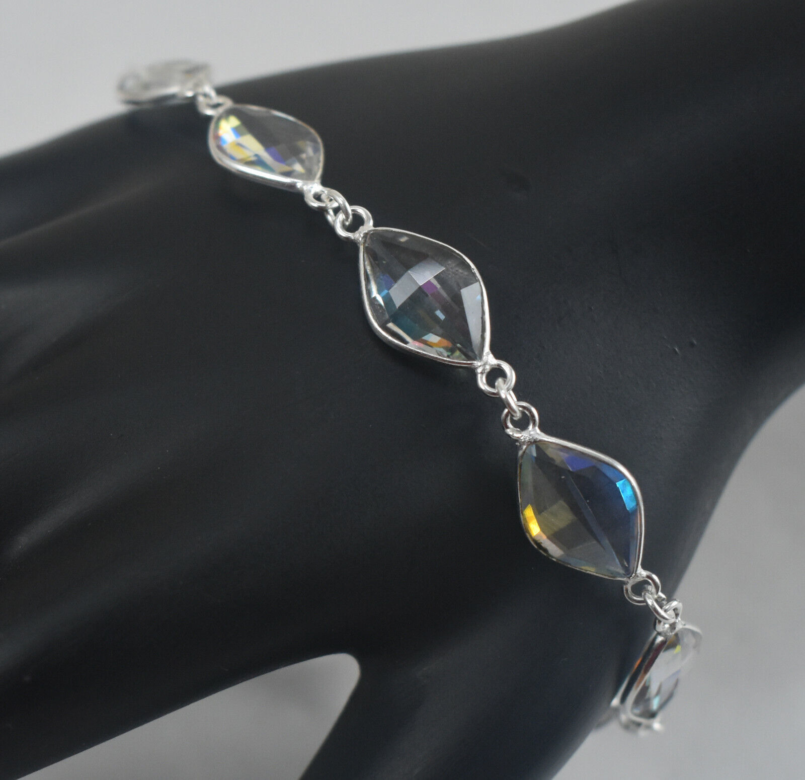 Argent Massif Blanc Gemme Topaze Main Chaton Bracelet Cadeau Pour Femmes BS