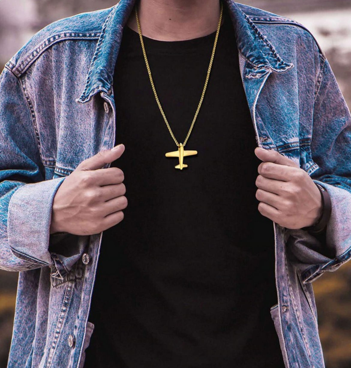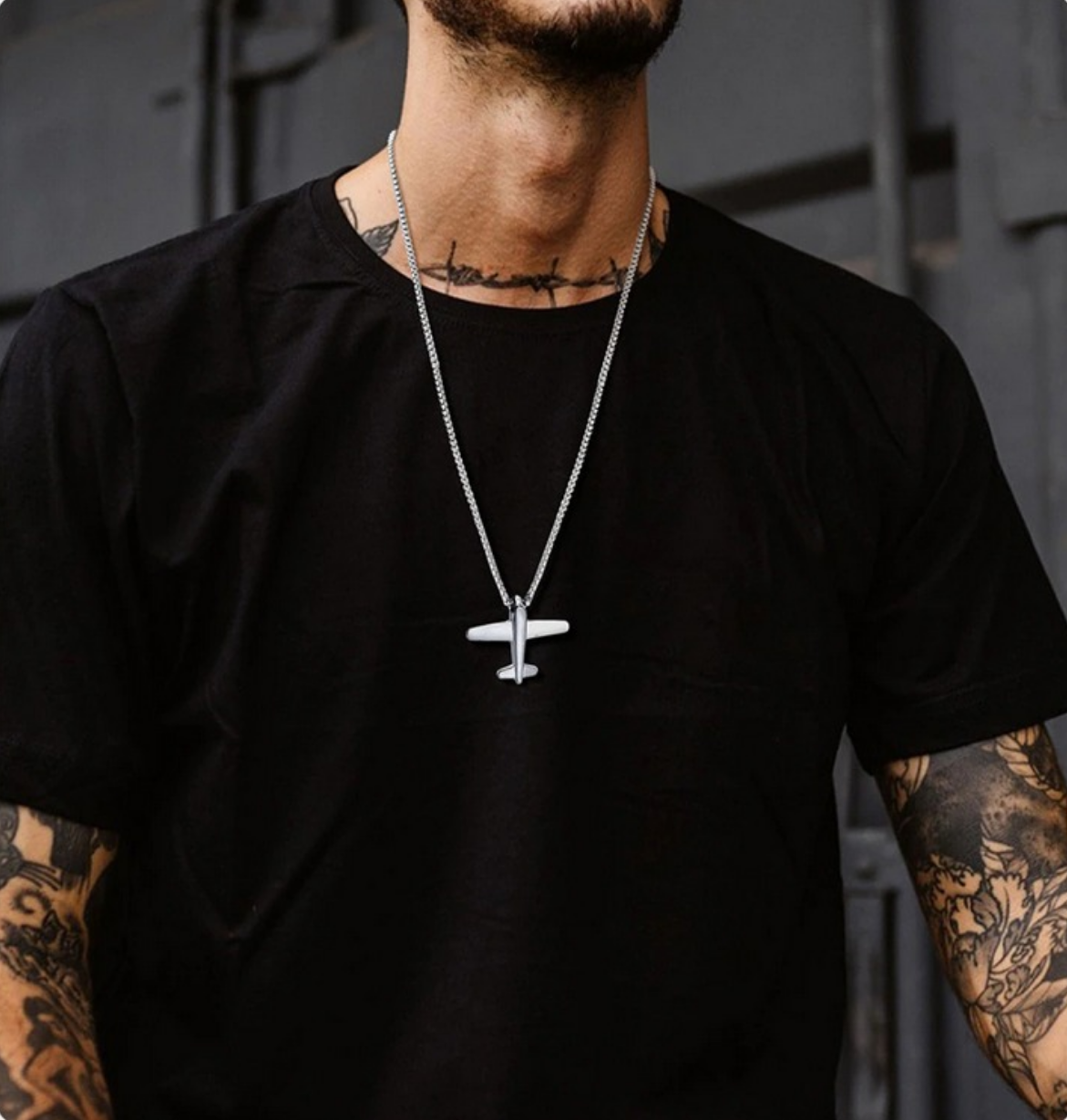 Men's Vintage Air Force 316L Stainless Steel War Plane Pendant Necklace