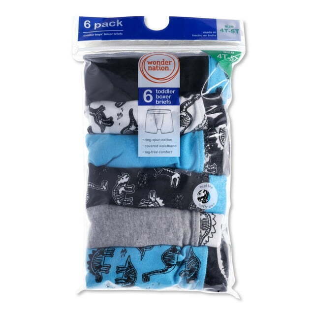 Time to restock and refresh his underwear drawer with these Comfort Waist Boxer Briefs. He?ll love how comfy they feel and love to pick his favorites for the day from assortment of playful colors and patterns. Crafted in 100% cotton for all-day comfort, these underwear have an elasticized waistband for your toddler on the move. These Comfort Waist Boxer Brief Underwear from Wonder Nation come in a convenient, money-saving six-pack?time stock up for less (yes!)