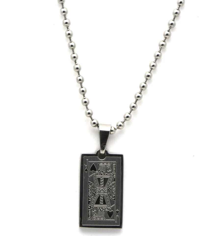 Jack of Spades Card Design Metal Beaded Necklace - 2 x 1 cm Pendant