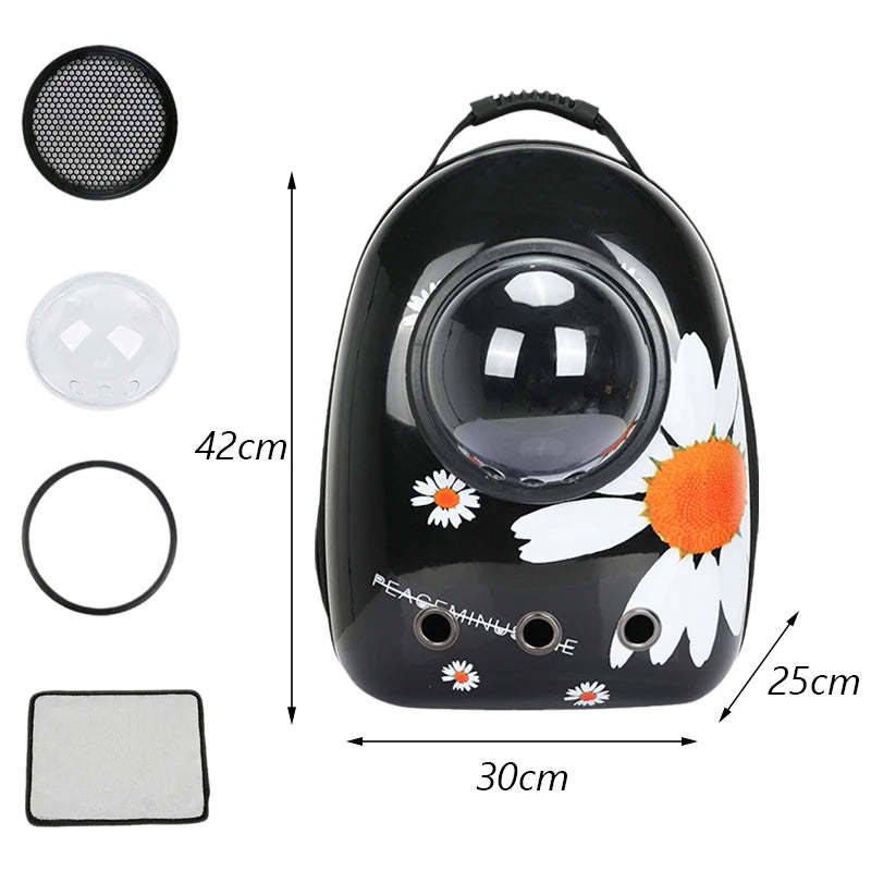 Anywags Pet Carrier Black Daisy Print Breathable Space Capsule Travel On the Go