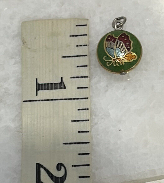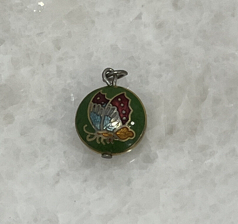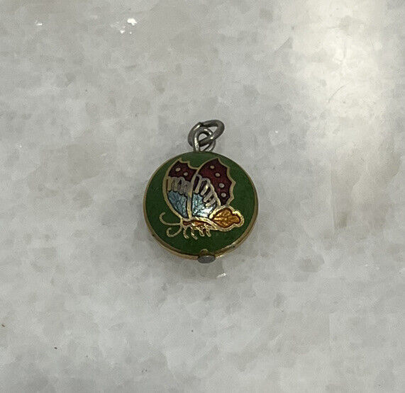 Vintage Gold Tone Cloisonne Colorful Enamel Butterfly Round Puff Circle Charm