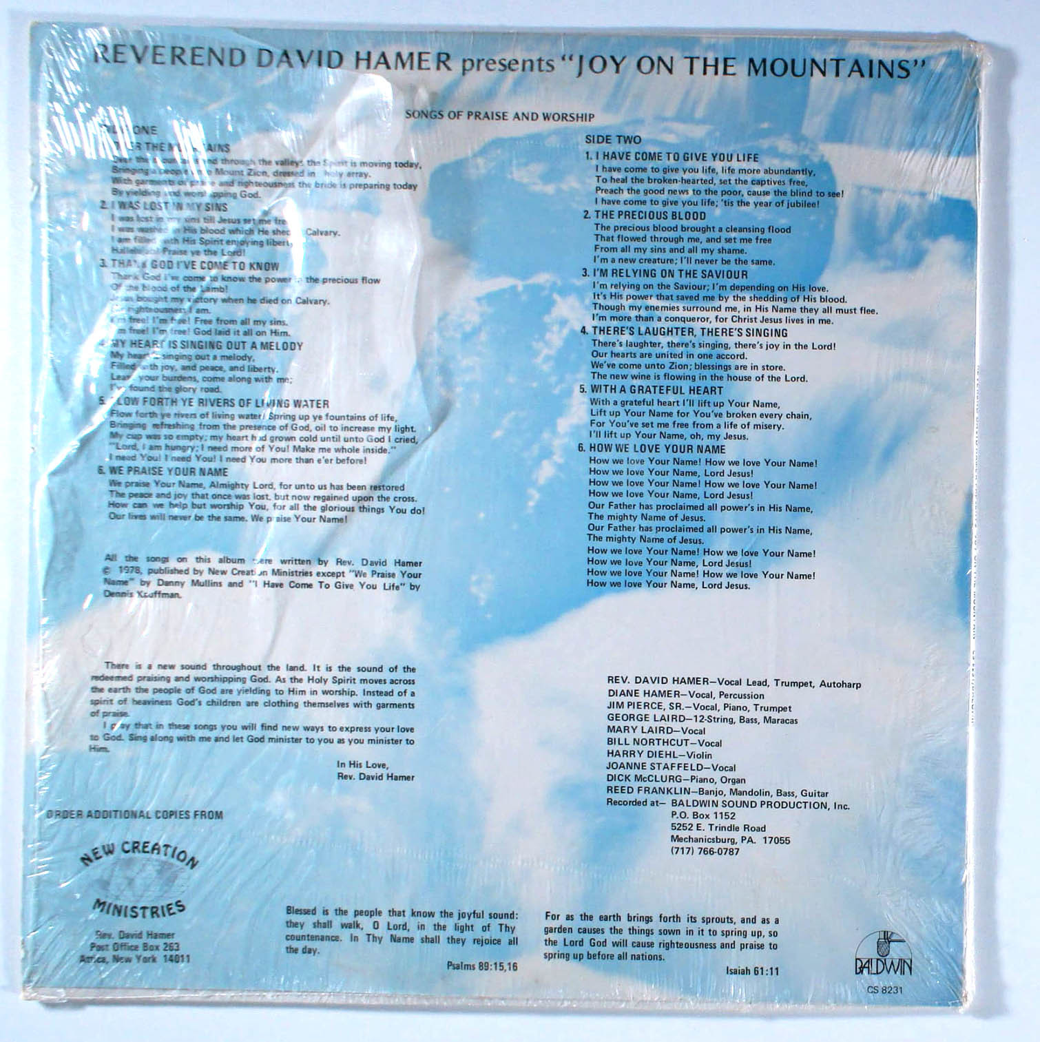 Reverend David Hamer - Joy on the Mountain (1978) Vinyl LP • Worship & Praise