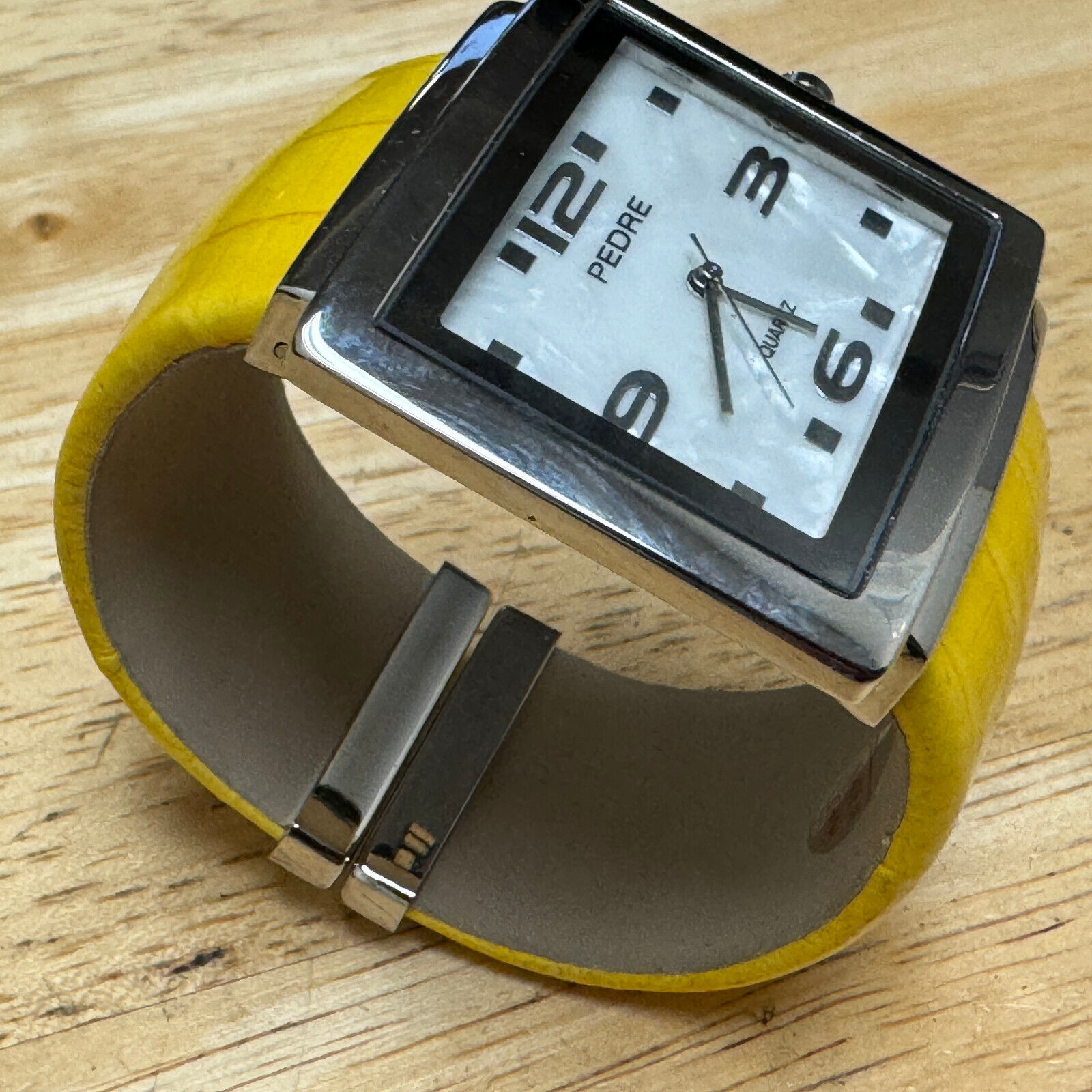 Pedre Quartz Watch Women Silver MOP Rectangle Japan Movt Cuff Bangle New Battery