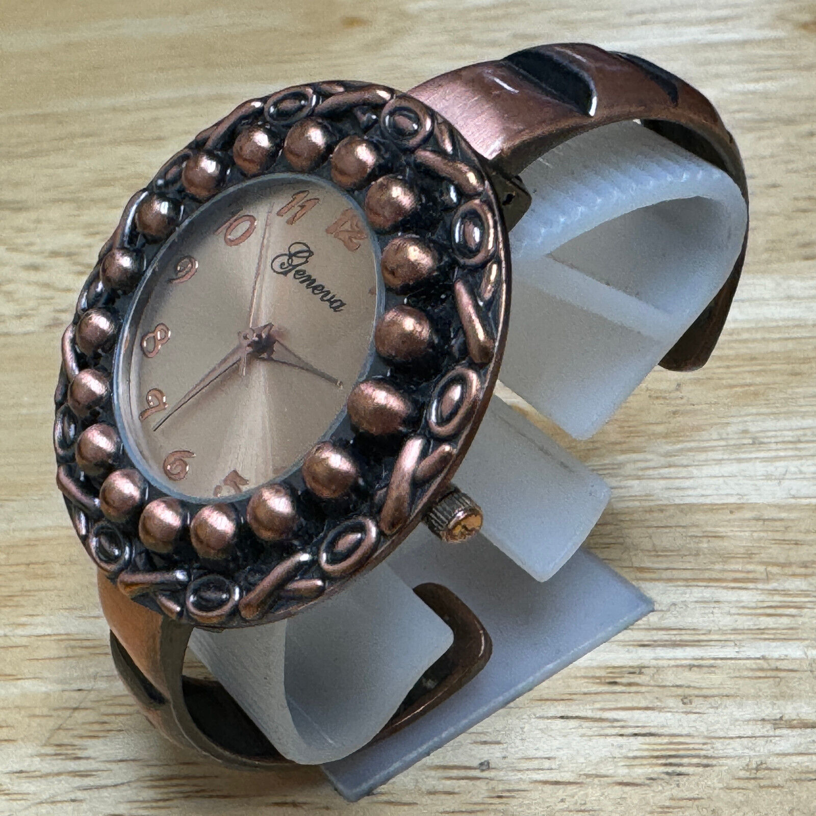 Geneva Quartz Watch Women Bronze Tone Ornate Bezel Cuff Bangle New Battery