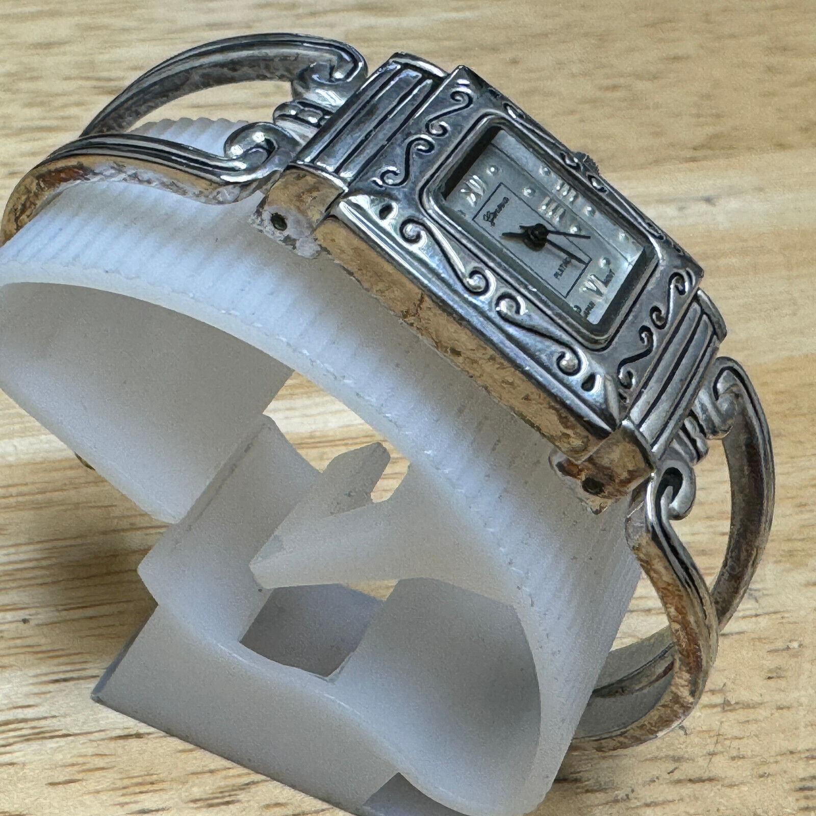 Geneva Quartz Watch Women Silver Rectangle Japan Movt Cuff Bangle New Battery