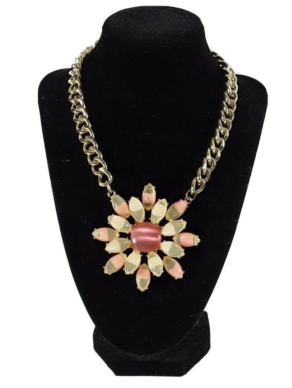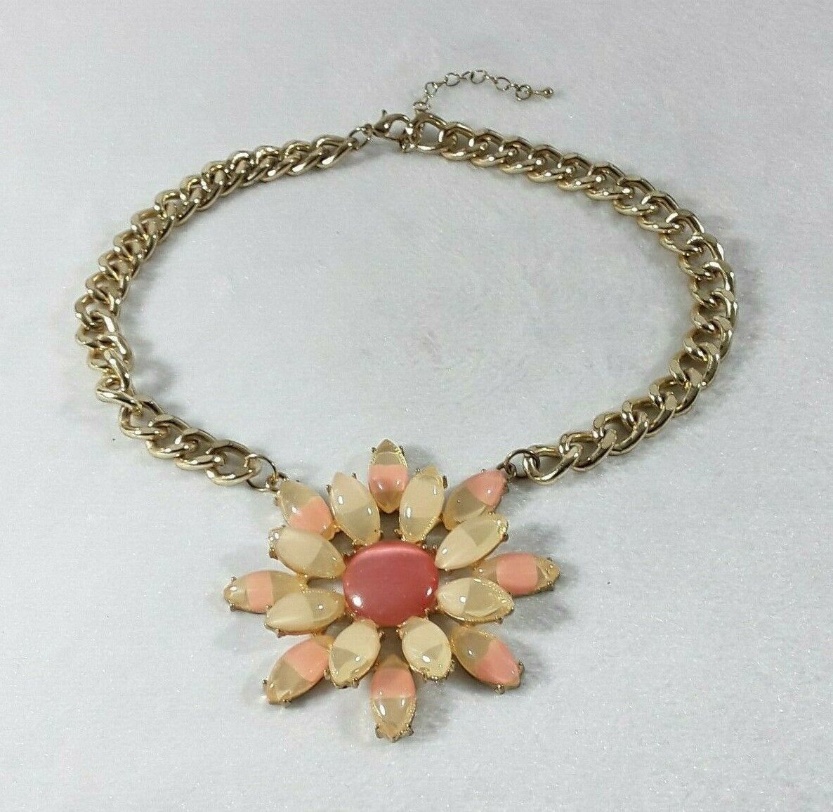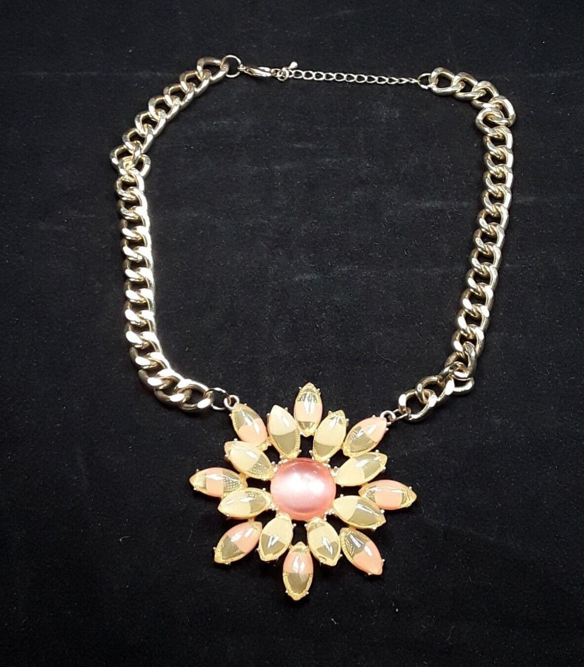 Up for sale: Floral Pendant Necklace Pink Orange Gold-Toned Chain in great condition with the following features: