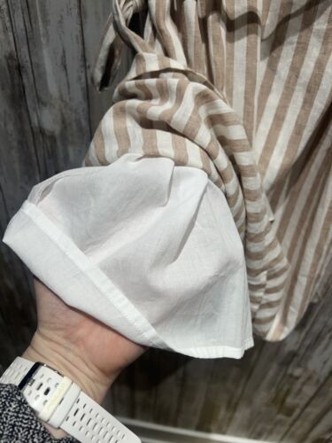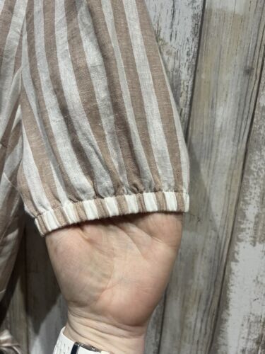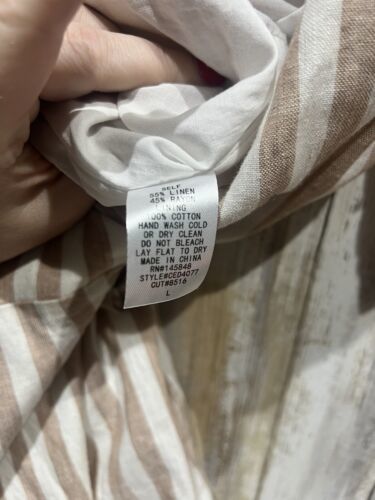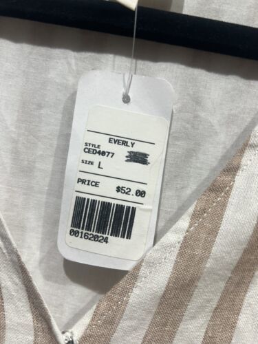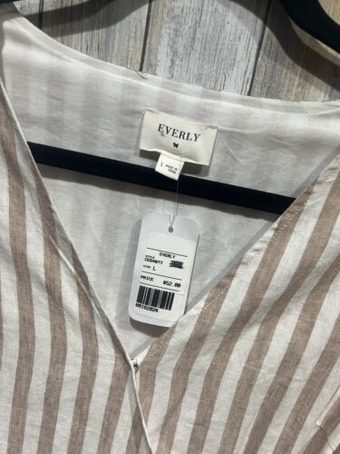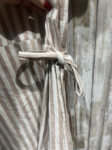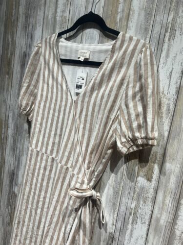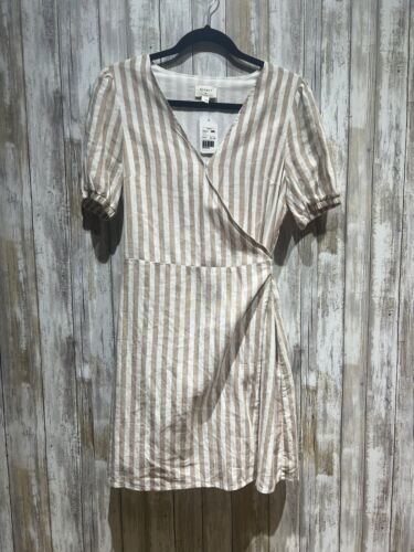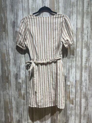 Everly Women Dress Size L Beige White Striped Linen Wrap Short Sleeve B59