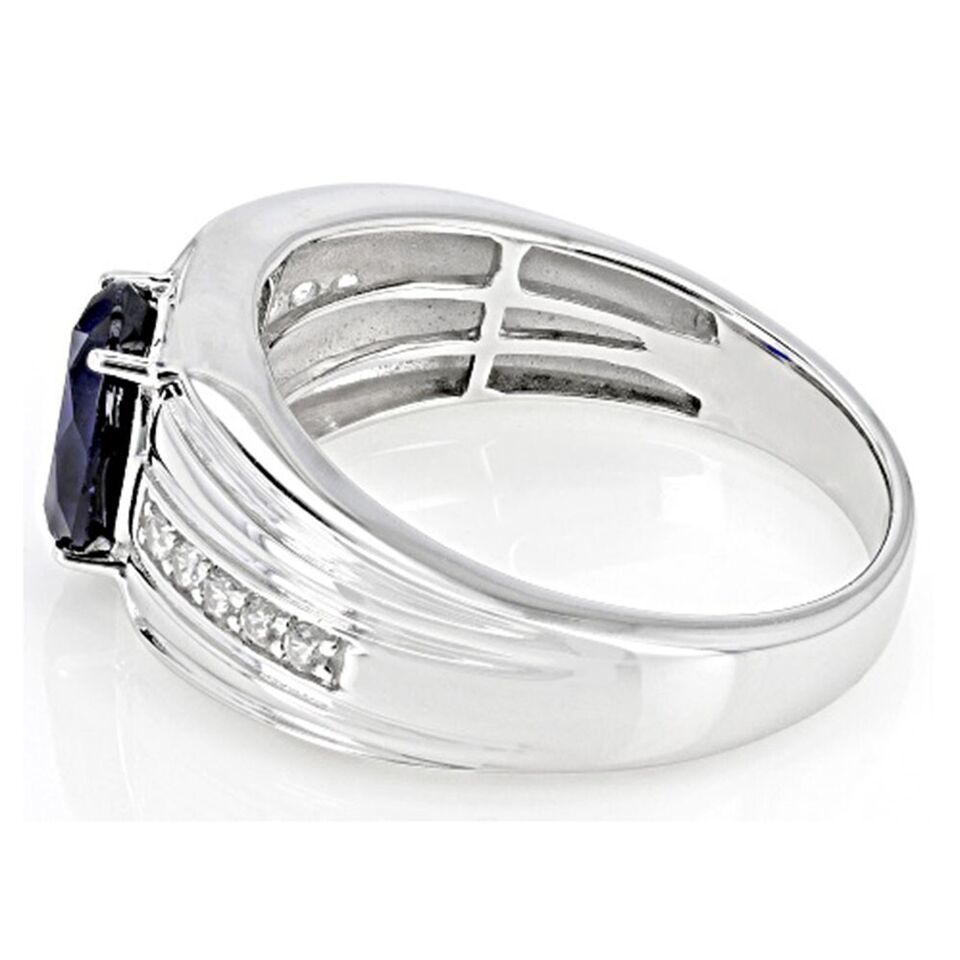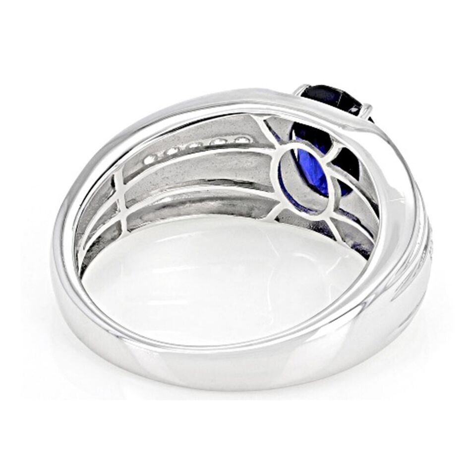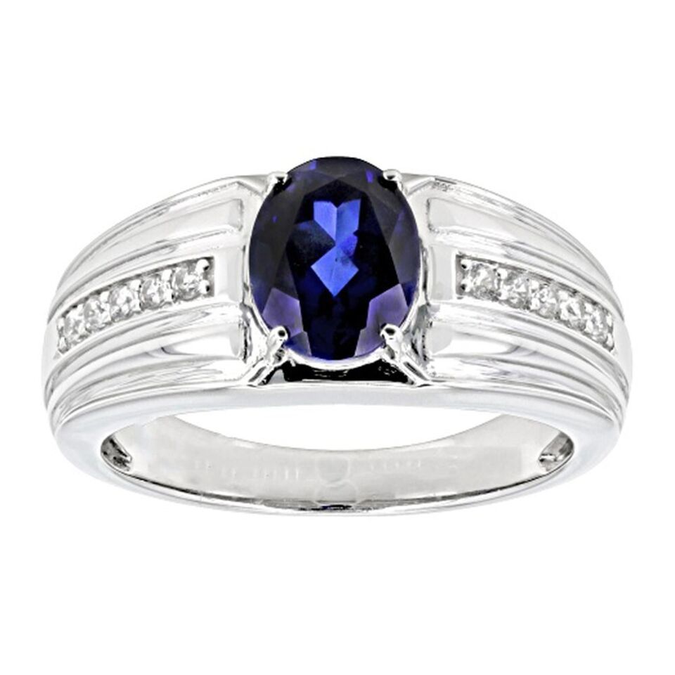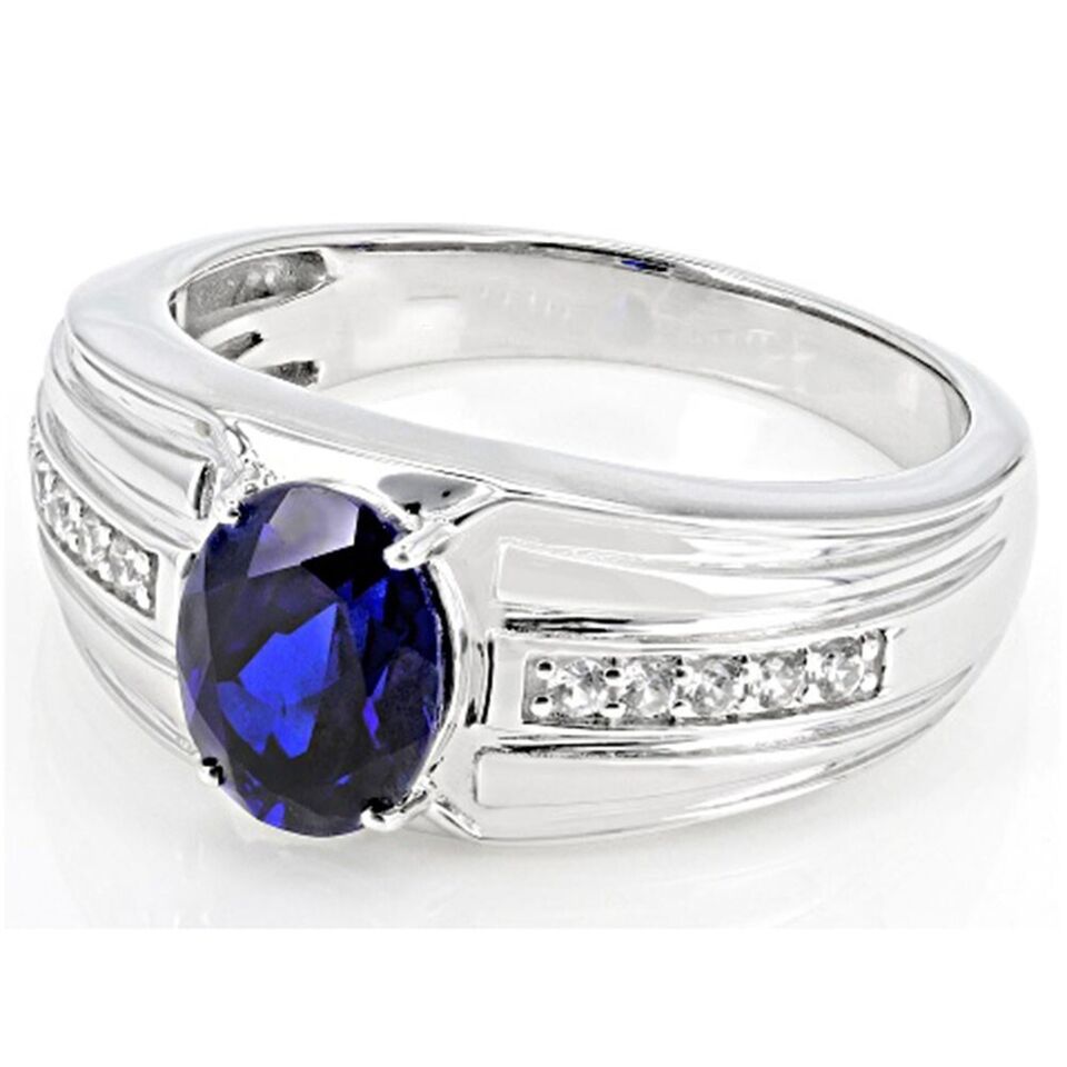 2.28 Ctw Oval Cut Blue Sapphire 14K White Gold Plated Solitaire Band Men's Ring