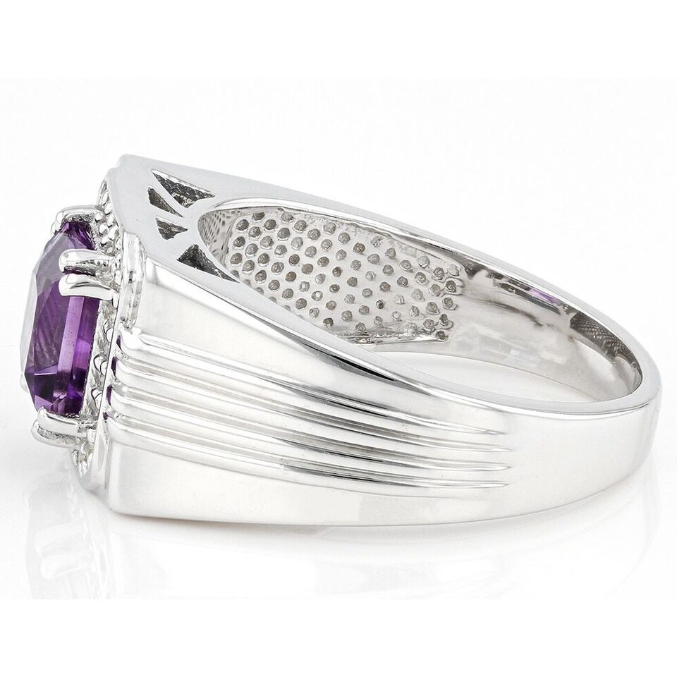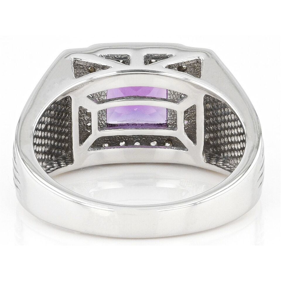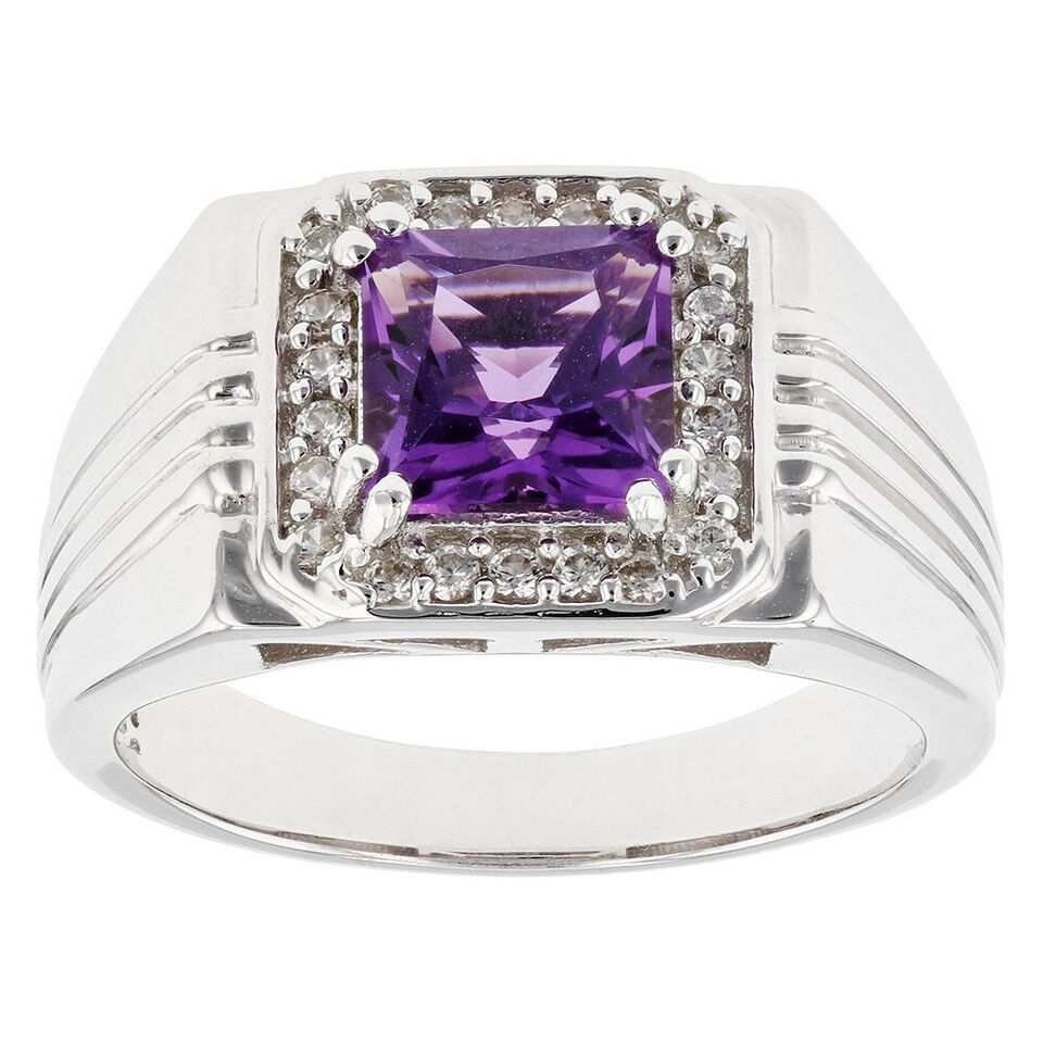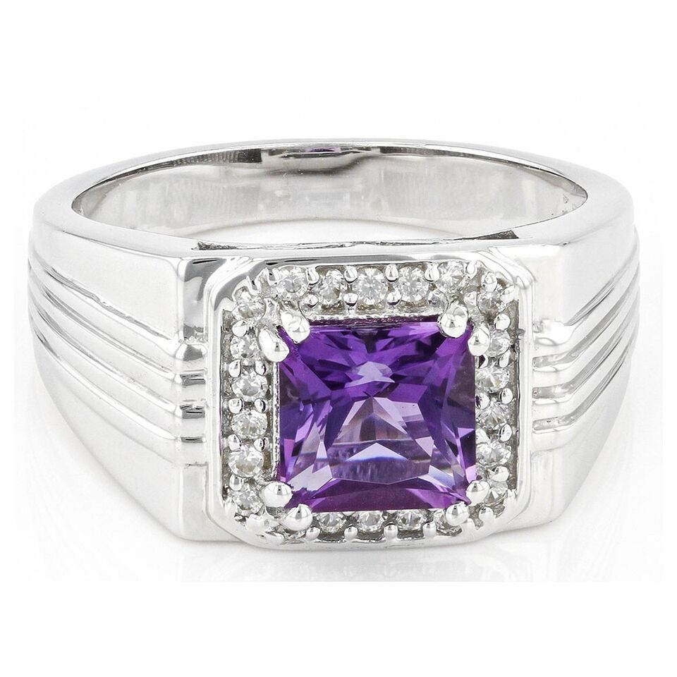 1.67 Ctw Princess Cut Amethyst 14K White Gold Plated Solitaire Ring For Men's
