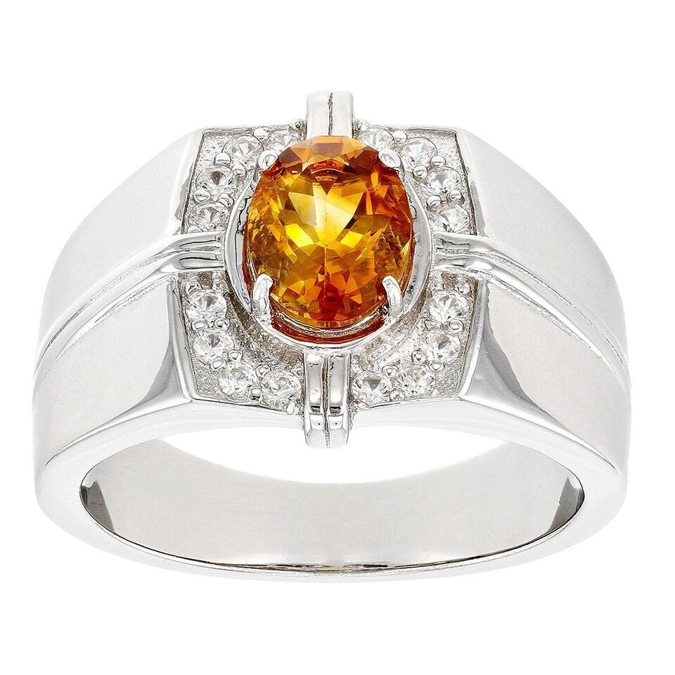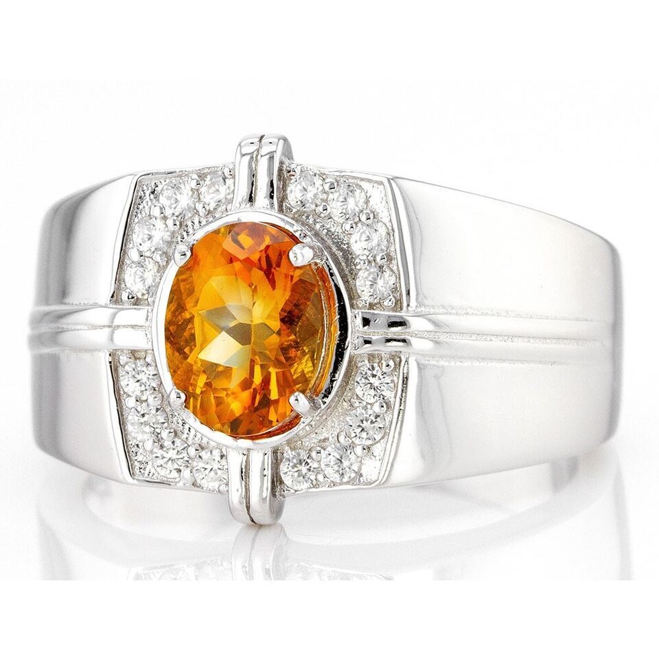 1.27 Ctw Oval Cut Citrine 14K White Gold Plated Wedding Band Ring For Men's