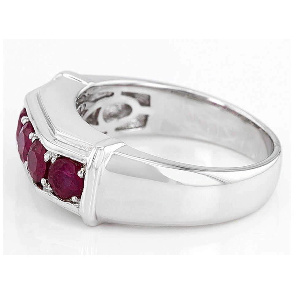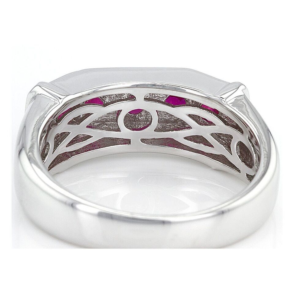1.64 Ct Lab Created Round Cut Ruby 14K White Gold Plated Wedding band Men's Ring