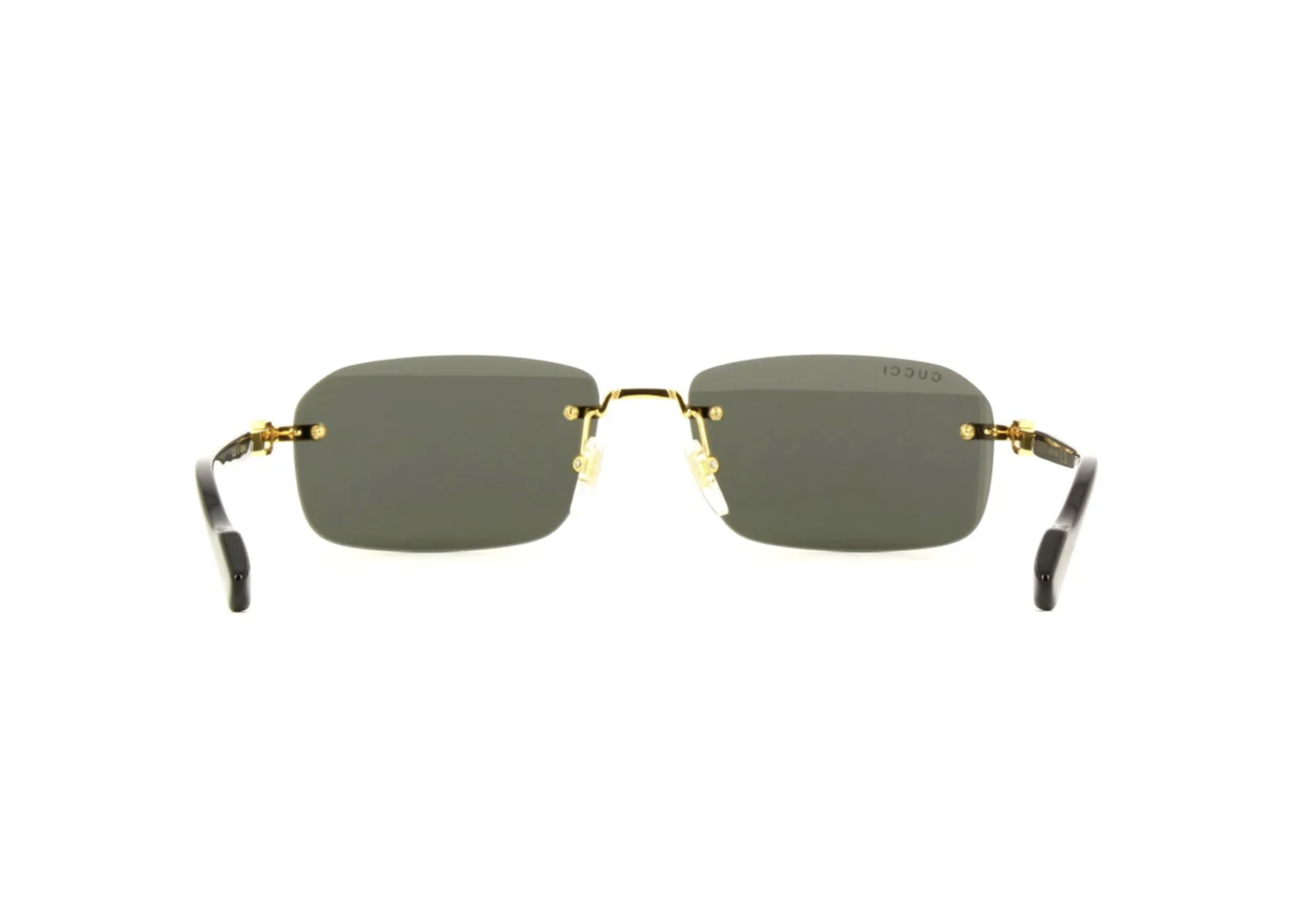 Gucci GG1221S 001 Rectangle Sunglasses.Gold metal, black acetate frame.
