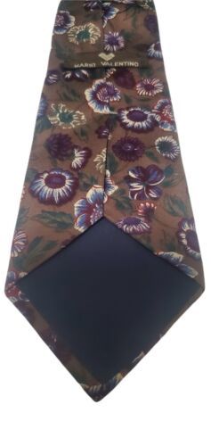 Mario Valentino Mens floral purple green Necktie Silk Tie 100% Italian Silk . .... .....