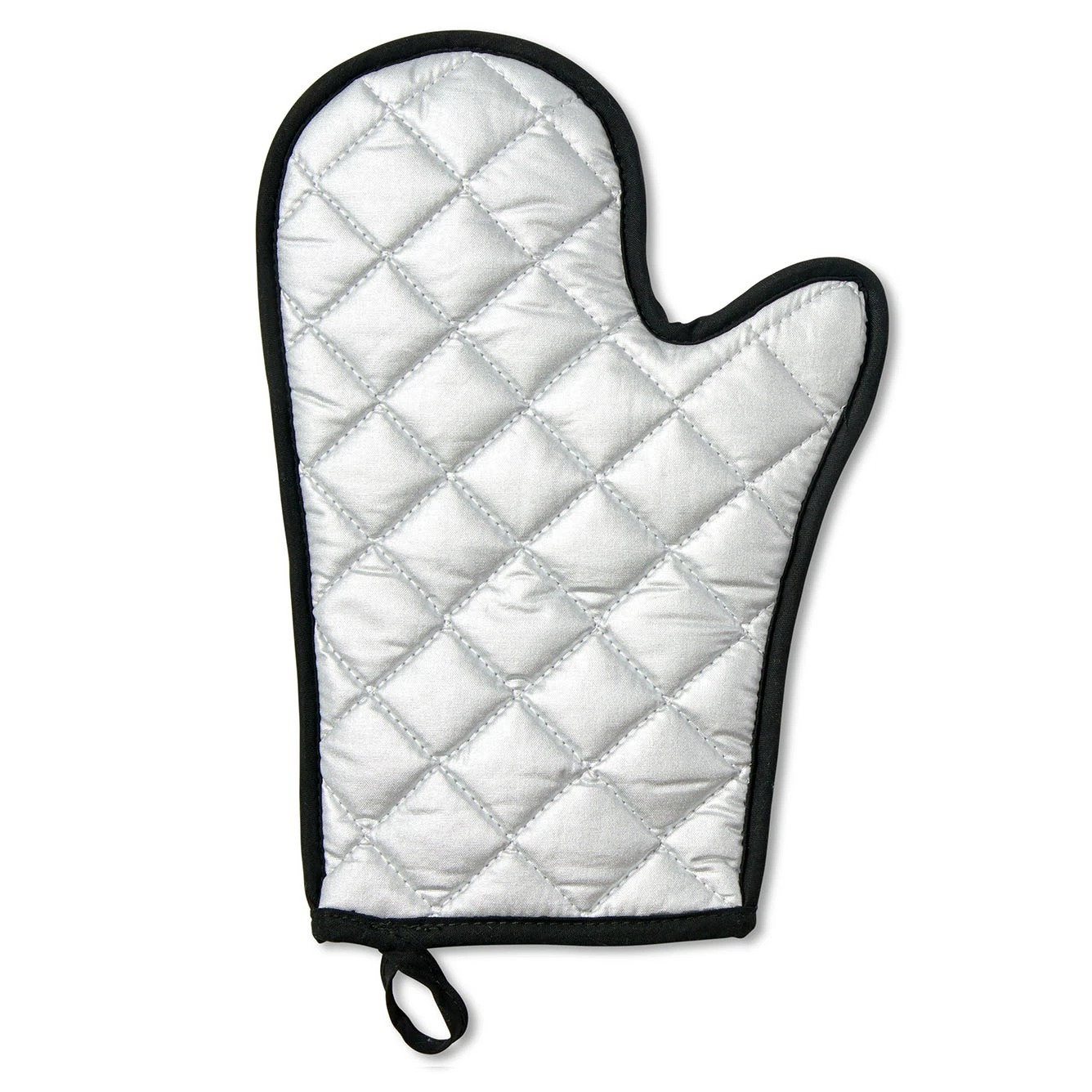 FABRIC: Mitt: 100 % polyester front/inside/fill, 100% Cotton metallic coated back, 100% cotton trim. Apron: 100% Polyester