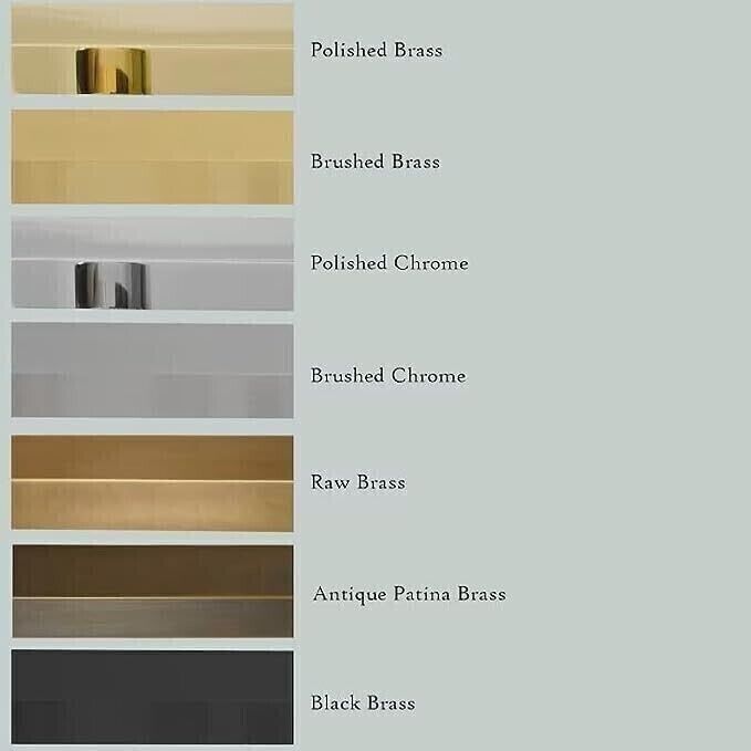 Available in a selection of finishes including antique patina, polished brass, brushed brass, raw brass, and black (blackened brass or antique black) and chrome (polished or brushed). We now also offer a copper finish and a selection of powder coated colours too.