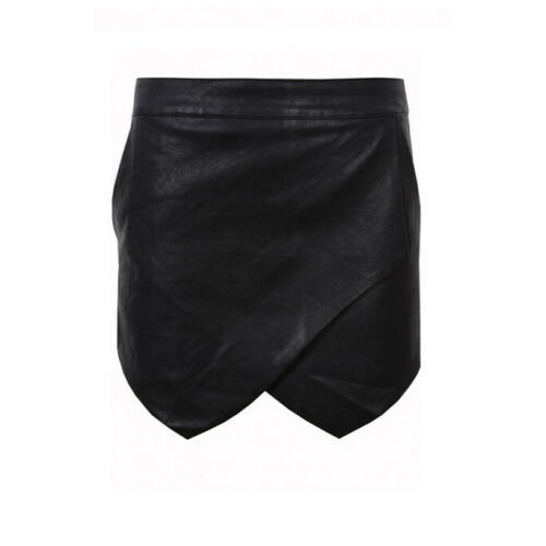 Celebrity Olivia Style Asymmetrical Faux Leather Angled Mini Skirt 8 10 12 14