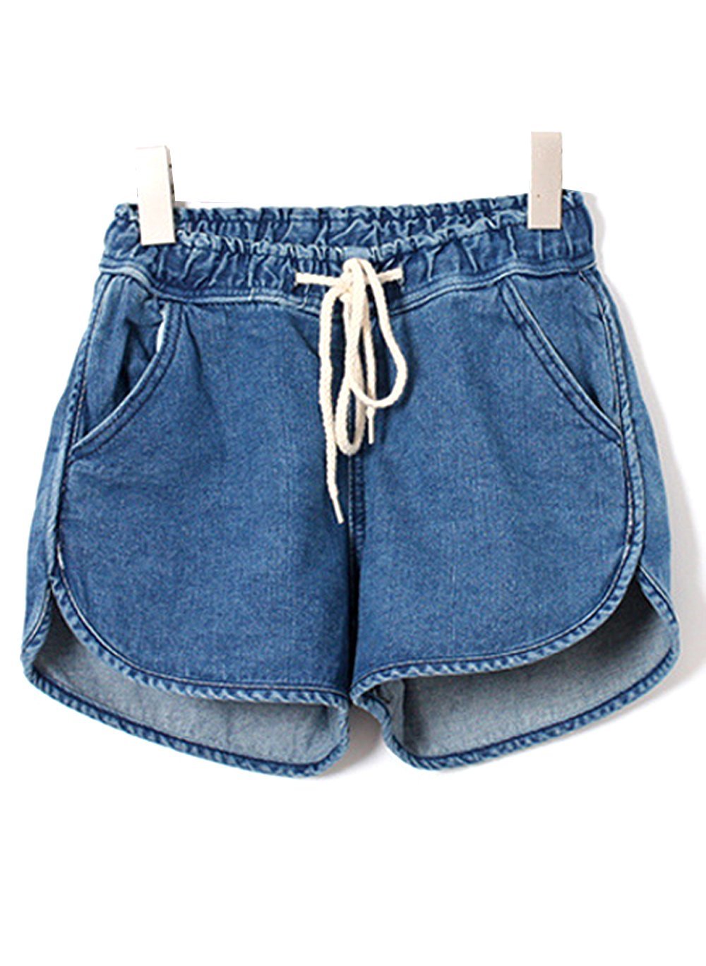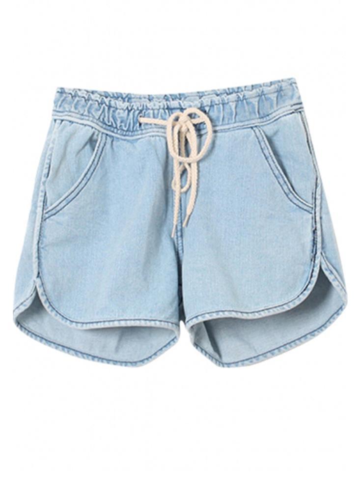 Women's Pull On Mid Rise Elastic Drawstring Waist Denim Shorts Australia 8 10 12