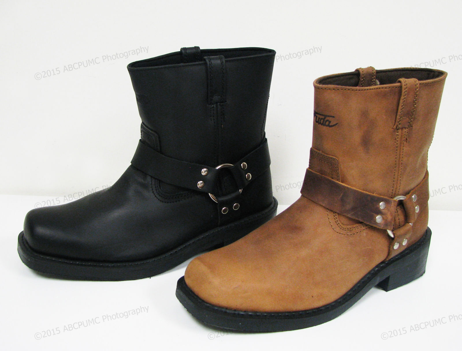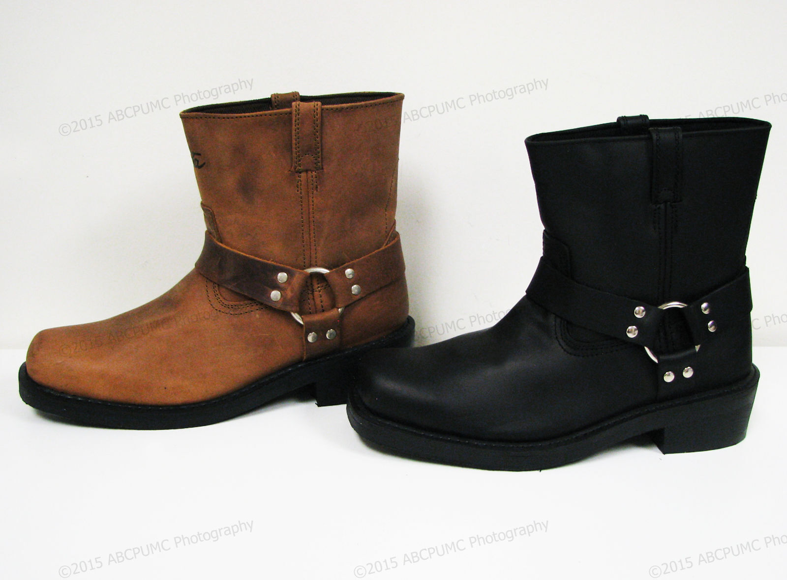 New with Box Men's Harness Boots Motorcycle Biker 6" Leather Riding, Black, Brown Sizes:6-13