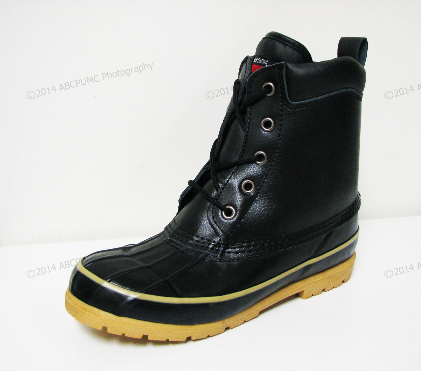 New with Box Men's Duck Boots Leather Black Thermolite Waterproof Hiking Winter, Sizes: 6-14