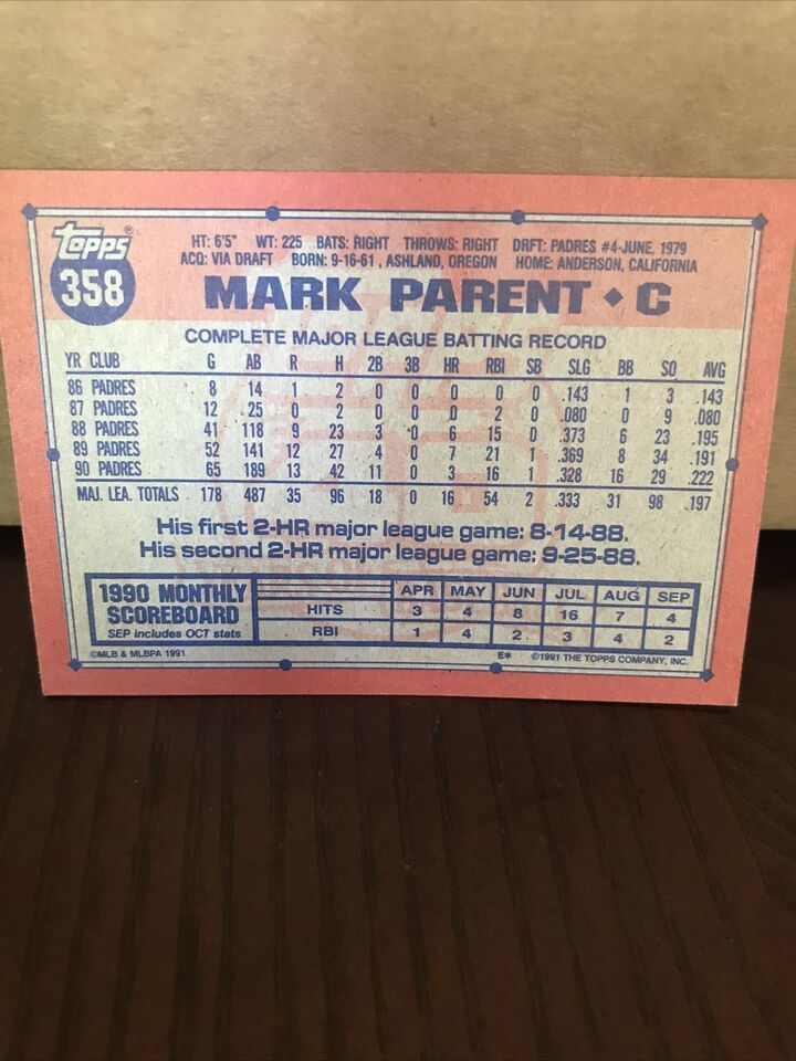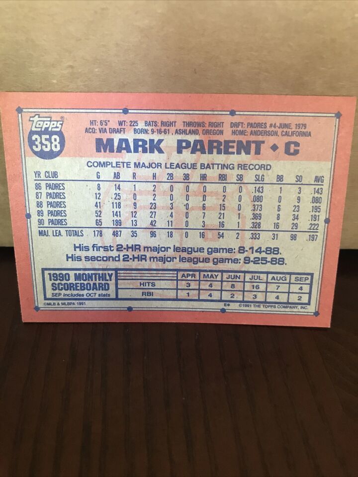Padres Mark Parent Baseball Card.