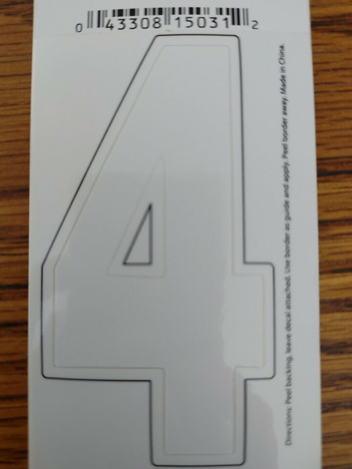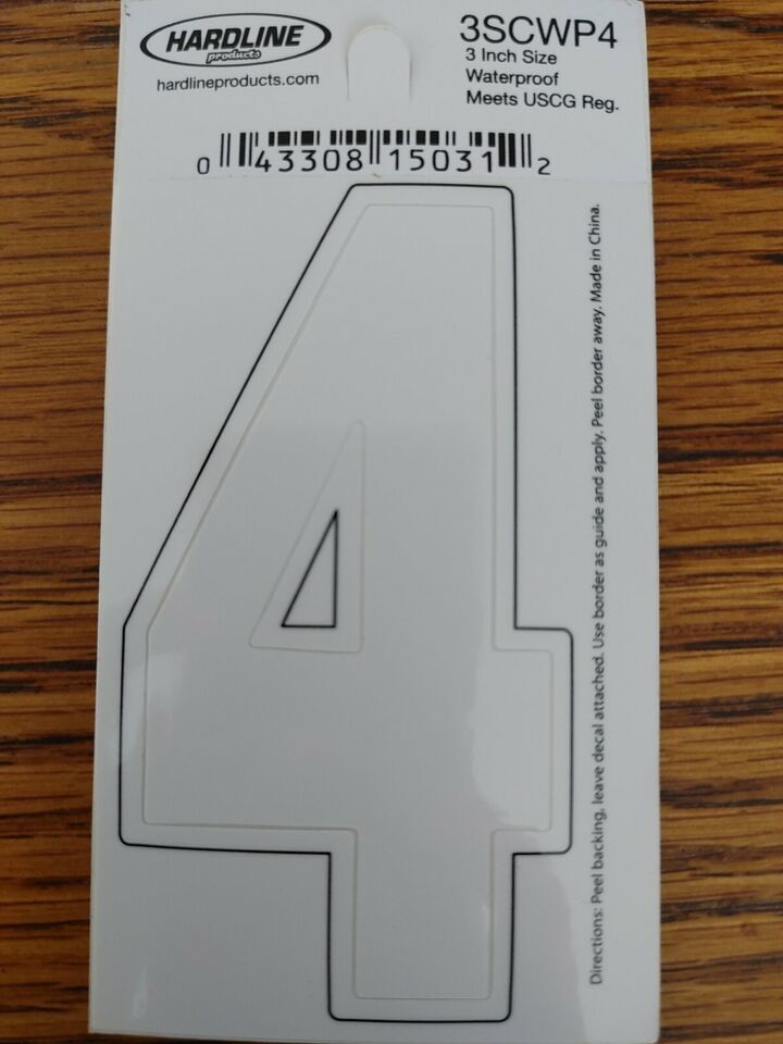 Hardline Self Adhesive Number 4 Glossy White Laminate 3 In Super Stick. Condition is "New". Shipped with USPS First Class. Within 24 hours. #755