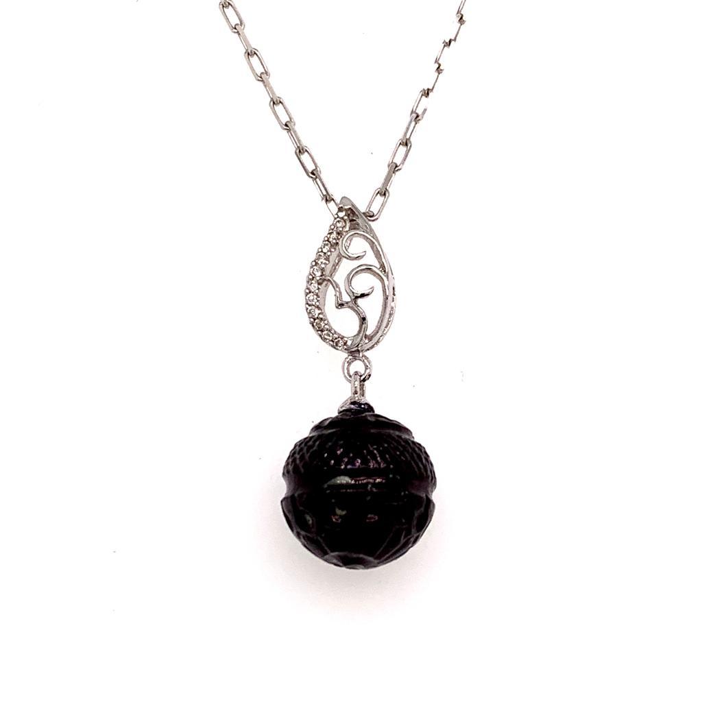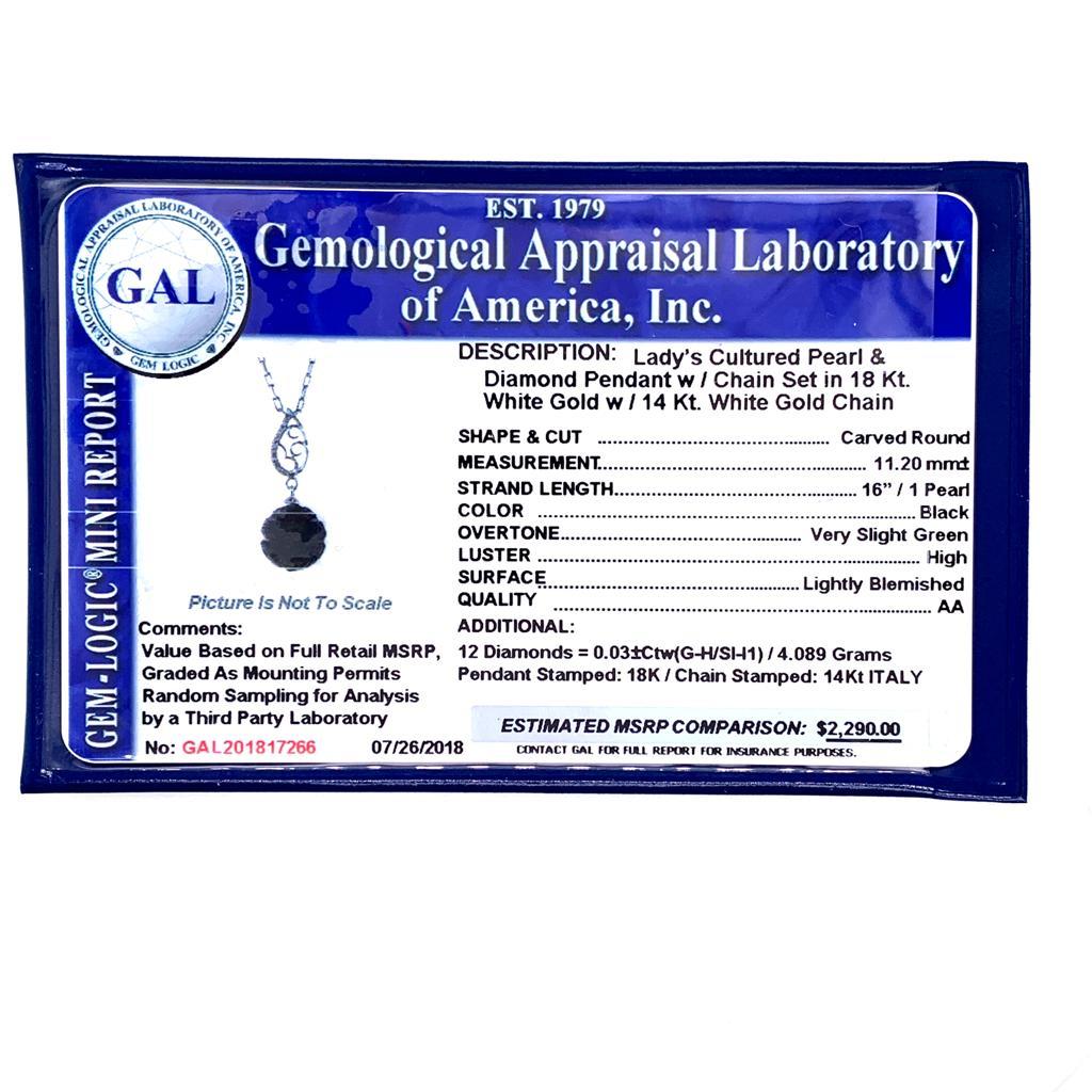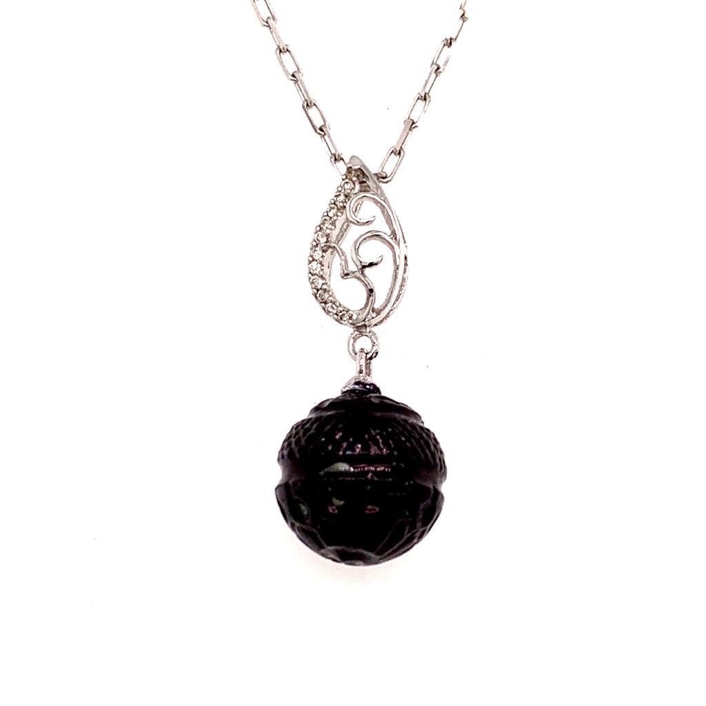 Fine Quality Carved Tahitian Pearl Diamond Necklace 18k Gold 11.2 mm 16" Certified $2,290 817266