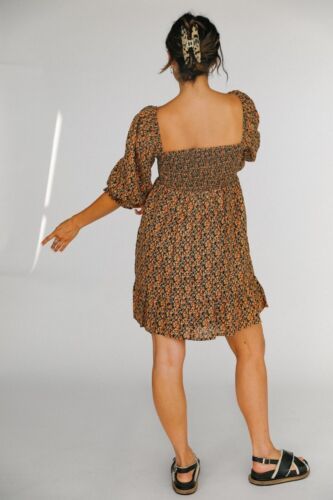 FAITHFULL THE BRAND Elira Smocked Cardette Floral Dress Linen 4 Small Ruffle
