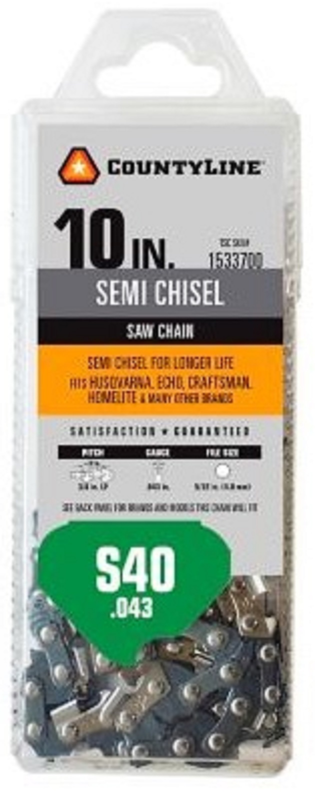 CountyLine 14340TSC Chainsaw Chain 10 Inch 40 Link Semi Chisel Steel