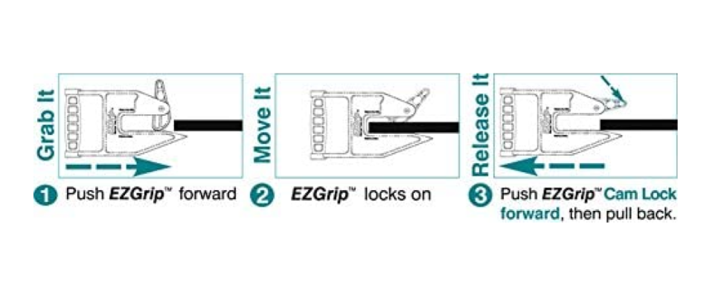 Simply push the tool onto the mat and pull - EZGrip grabs and holds the mat until you push the release lever