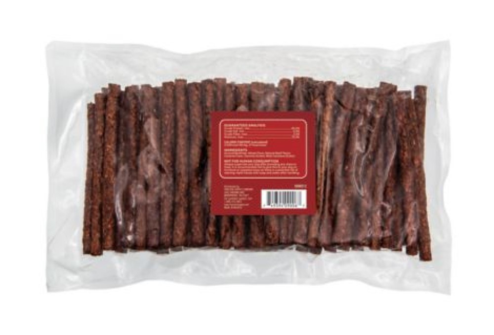 Beef basted sticks help reduce plaque and tartar that can build up over time Hand-made and oven-baked for long flavorful chewing This product is a treat and is intended for intermittent feeding only 100 dog chew sticks included with each purchase These dog treats are intended for use with medium and large breeds Weight: 2.03