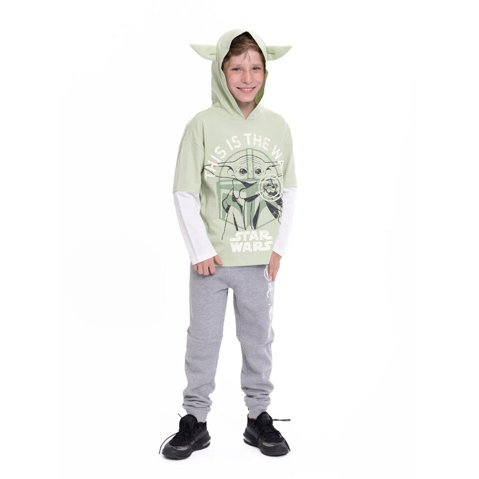 This is the way! He's ready to hang out with friends and look too cool doing it with this awesome Star Wars The Mandalorian Outfit Set for boys. This cosplay hoodie features his favorite travel companion Grogu (aka Baby Yoda!) and 3D ears on the hood for extra fun flair. Wear with the matching sweatpants and he's set for a casual, comfortable adventure.