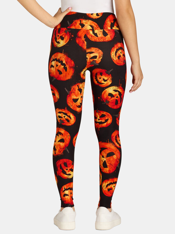 No Boundaries Junior High-Rise Sueded Fire Jack-O-Lantern Leggings Black S/M