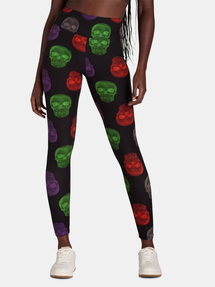 No Boundaries Junior Skull Sueded Halloween Leggings, Skulls/Black Soot Size S/M