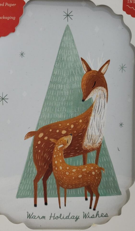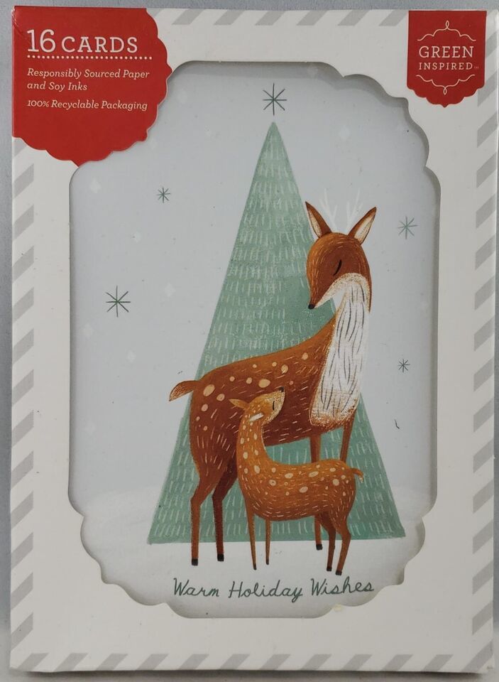 Green Inspired Holiday Greeting Cards, Mama & Baby Deer Design Boxed Card, 16 ct