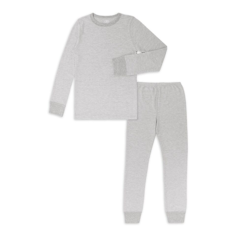 You cannot go wrong with this Athletic Works Boy's Waffle Knit Thermal Set. This thermal set is extra warm yet breathable thanks to their cotton/poly blend construction. He'll keep warm in this base layer as ribbed wrist and ankle cuffs trap in precious body heat. Your big boy will feel comfortable and cozy in this fitted thermal set that features a crew neckline for a classic look that can also double as PJs