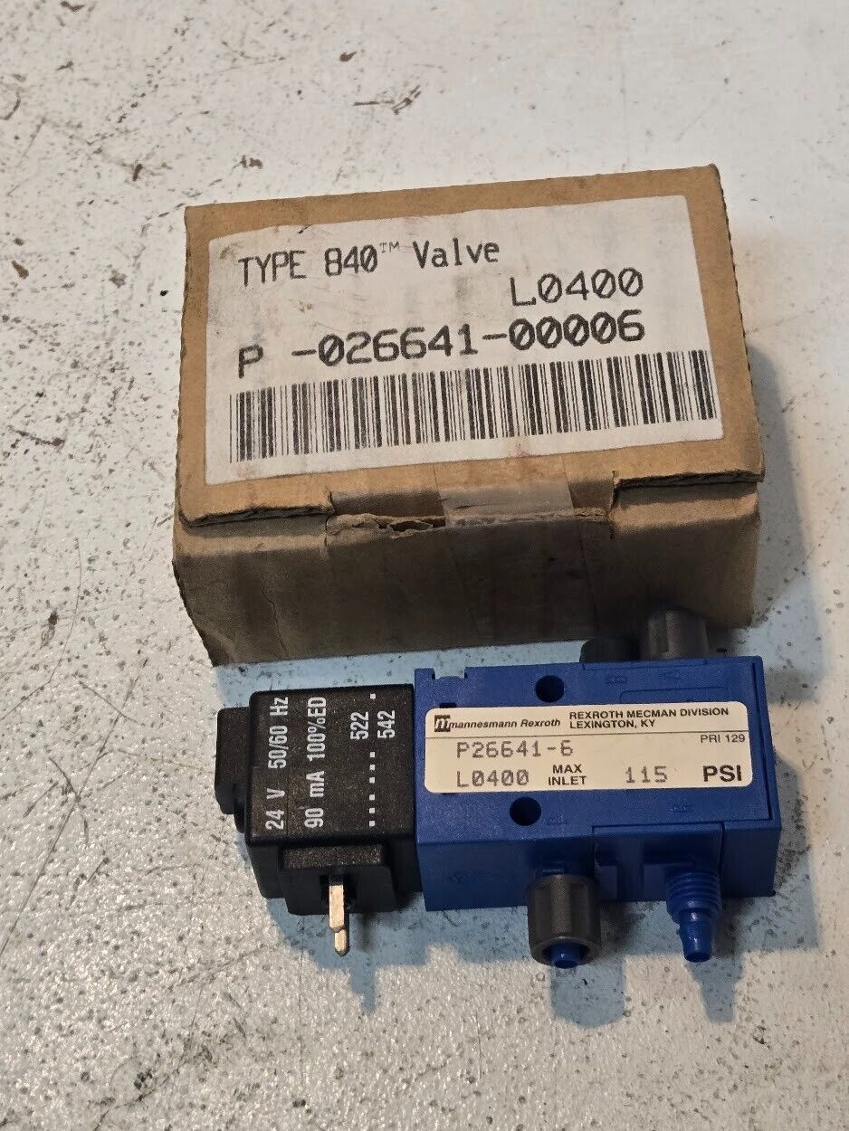 Mannesmann Rexroth P26641-6 Pneumatic Solenoid Valve L0400 Type 840 Valve 115PSI