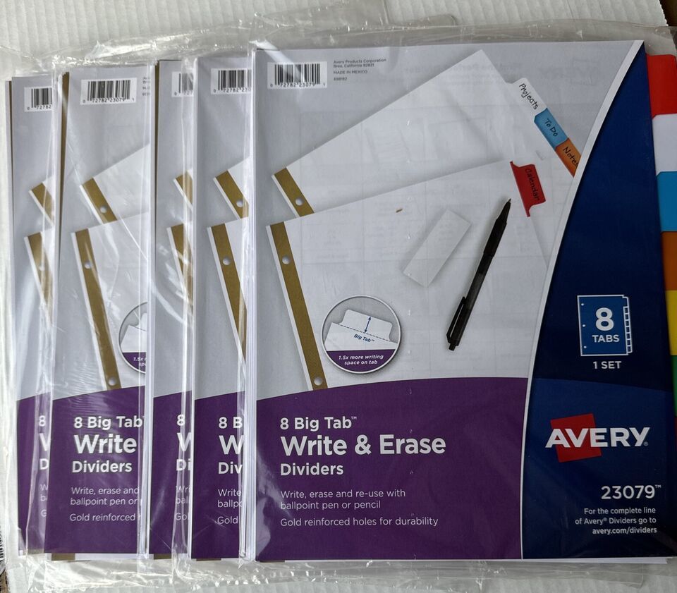 Avery Dennison 23-079 Big Tab Write-on Dividers With Erasable Tabs - 8, 6 Set...