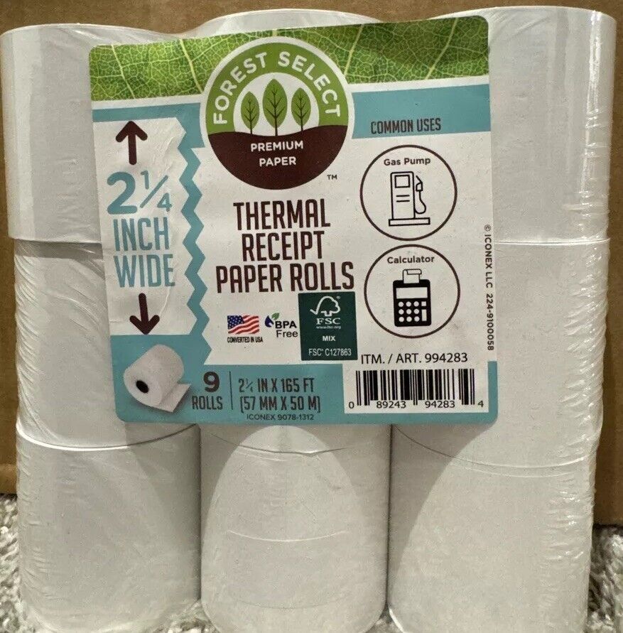 Forest Select 2-1/4”, 9 Rolls,POS Printer Thermal Receipt Paper, Free Shipping