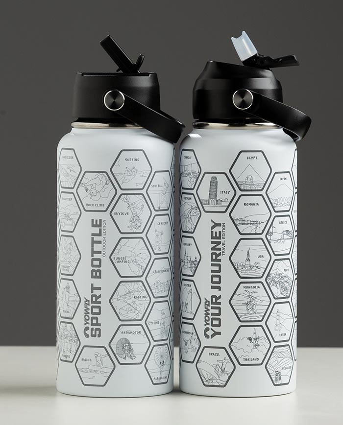 Mark off where you have been with YOWFLY’s Ultimate Your Journey Bottle! National destinations Water Bottle With Stickers: Travel with a master piece,one of the greatest national journey gifts – for yourself or others!