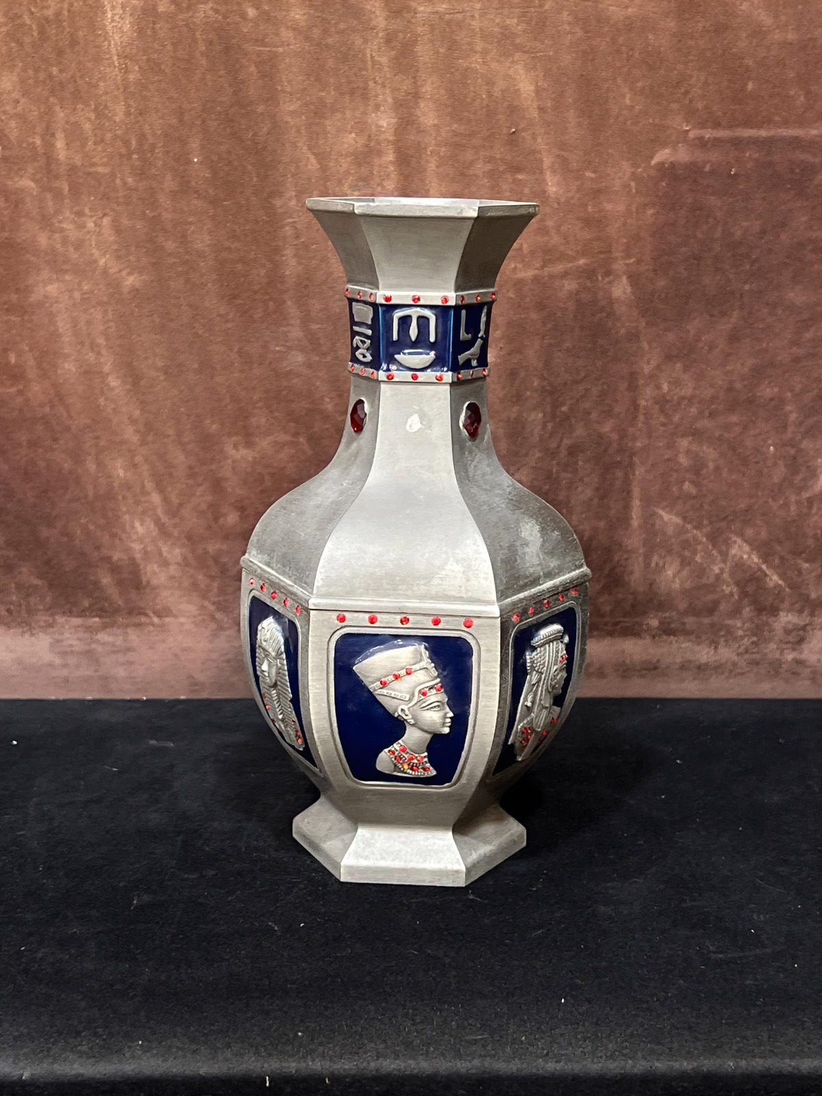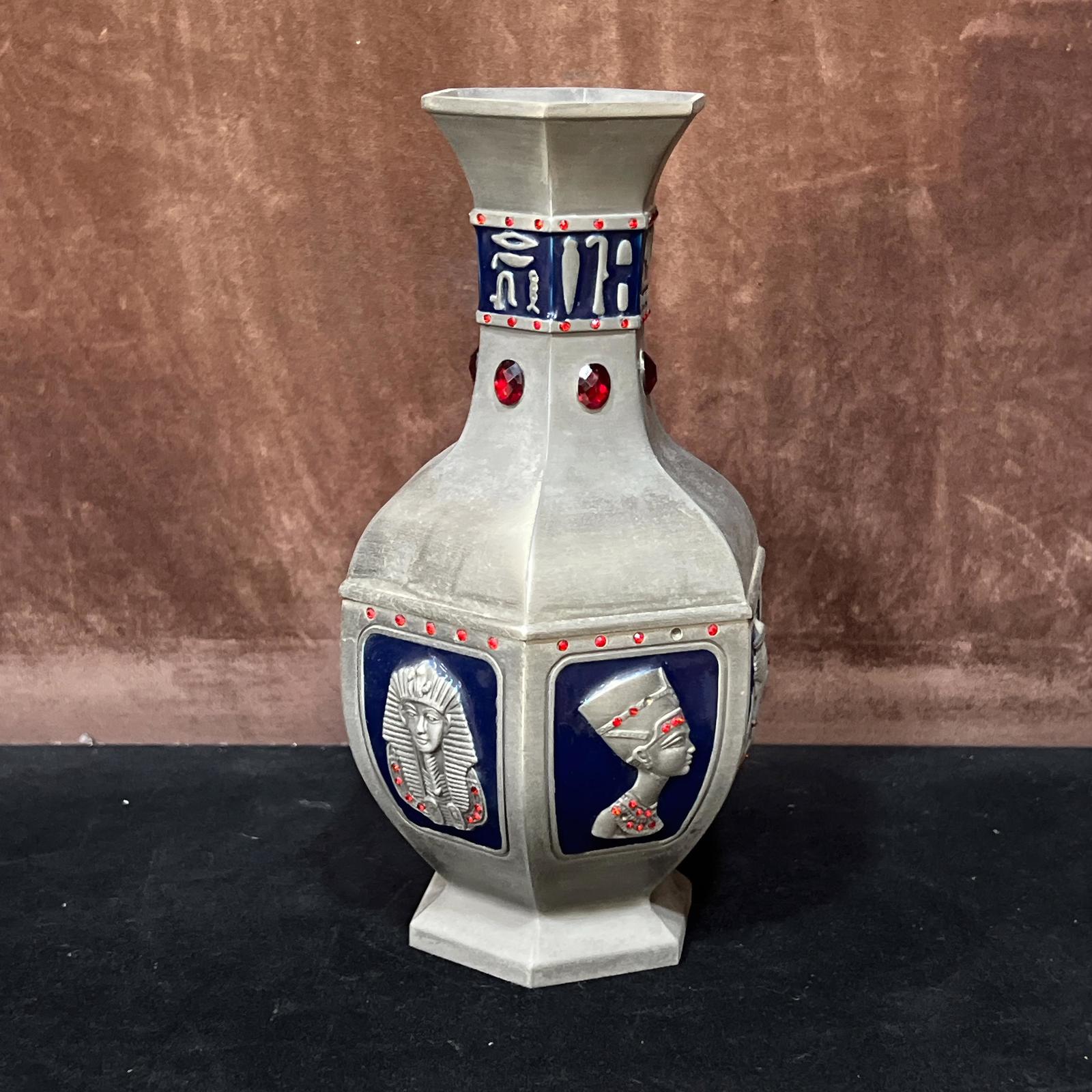 Egyptian handmade bronze Vase, Ancient Egyptian Incense with King Tut, Queen Nef