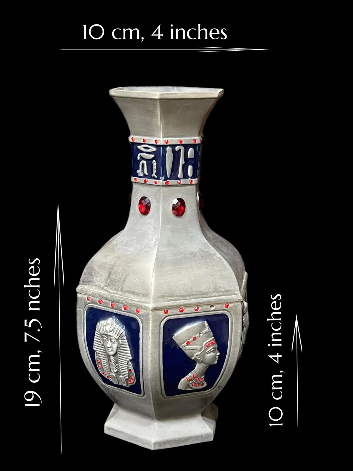 - **Tribute to the Pharaohs:** The vase features intricate engravings of iconic figures from ancient Egypt, including the renowned **King Tutankhamun** and the illustrious **Queen Nefertiti**. These detailed depictions transport you to a time of grandeur and divine royalty.